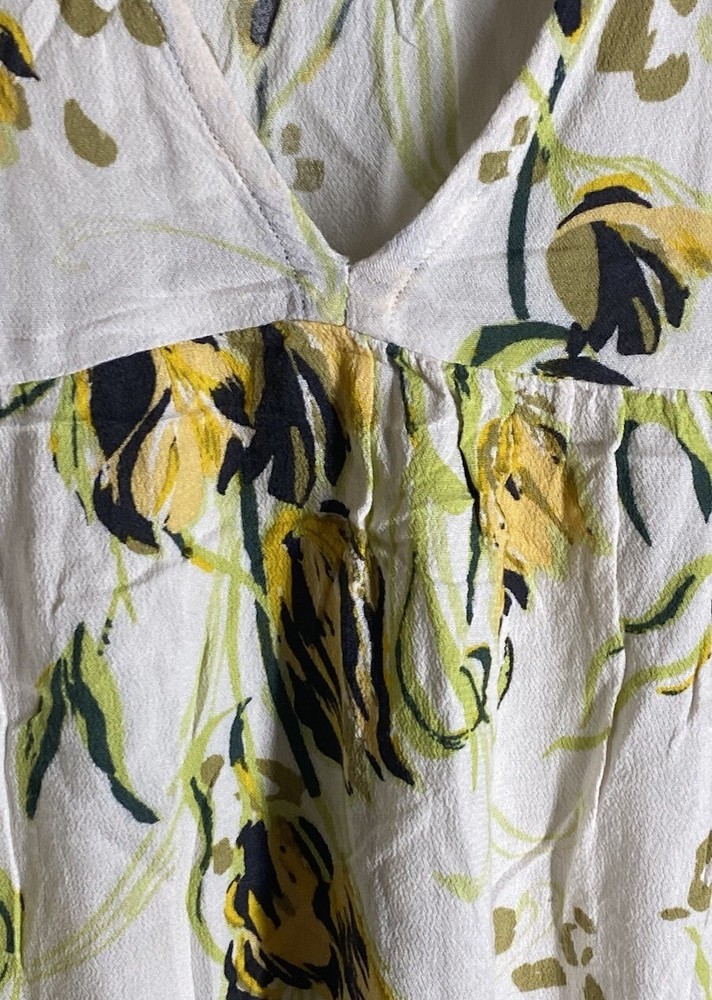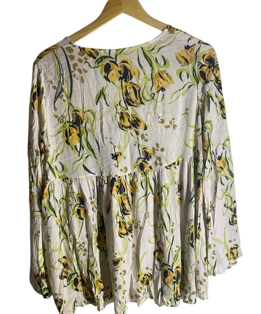 Absolutely love this tunic! The soft cream color with delicate yellow flowers is so pretty, and the flowy bell sleeves add a boho-chic touch. Fits perfectly as a small, and the pre-owned condition is flawless—no stains or tears. Super comfortable and lightweight, perfect for layering or wearing on its own. Such a great find!