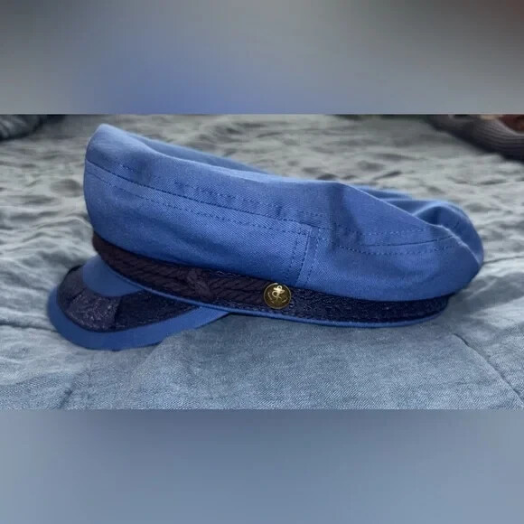 Beautiful Greek fisherman?s cap. Denim hat with ribbon embellished brim. Silky liner at the crown *While the Greek Fisherman is a well known character of the Western World, one does not need to be Greek, nor a fisherman, to wear an Aegean cap. However, a feeling for adventure and romance is a must! Care/Import *100% Cotton