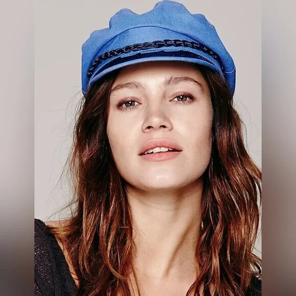 Free People Denim Fisherman Cap NWOT Size M Blue Black Trim