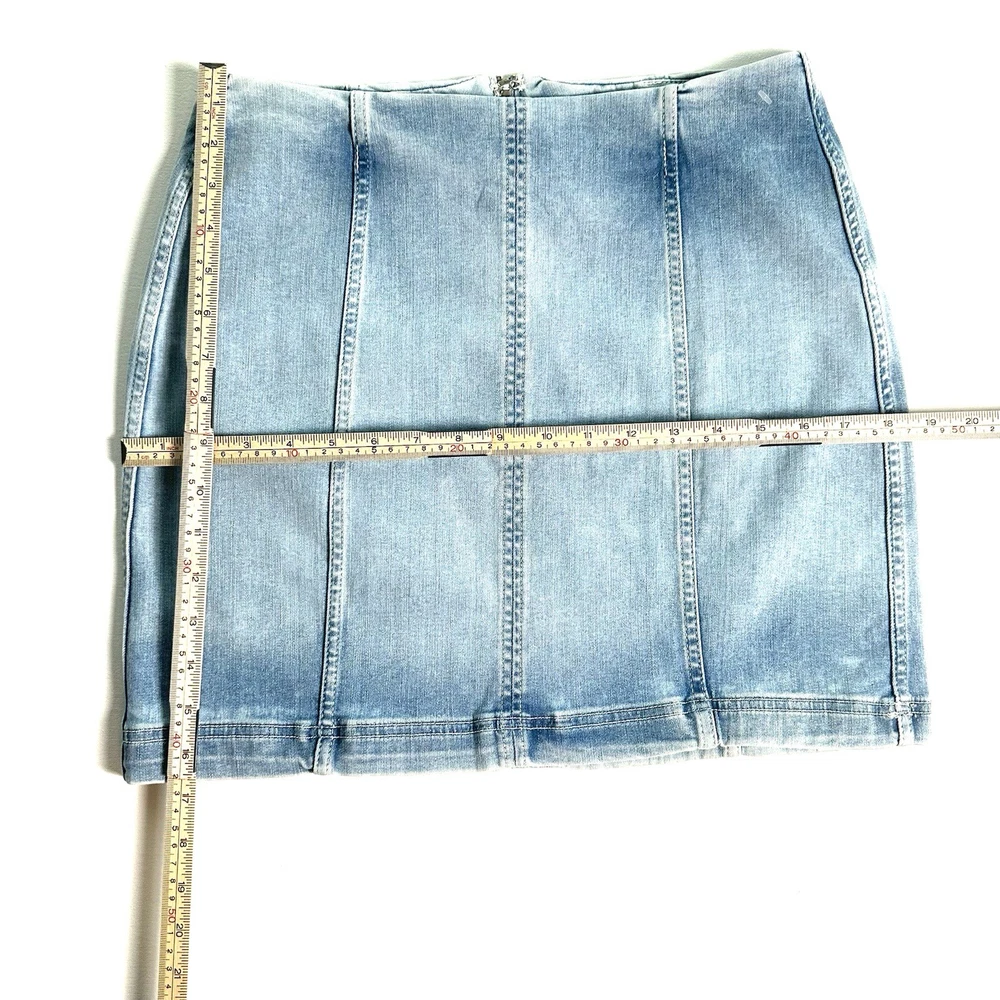 New without tags Perfect condition Back zipper closure Light wash blue denim Has some stretch See pictures for approximate measurements All sales are final.