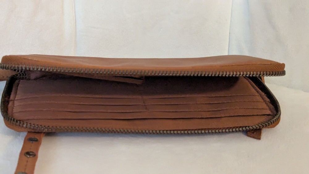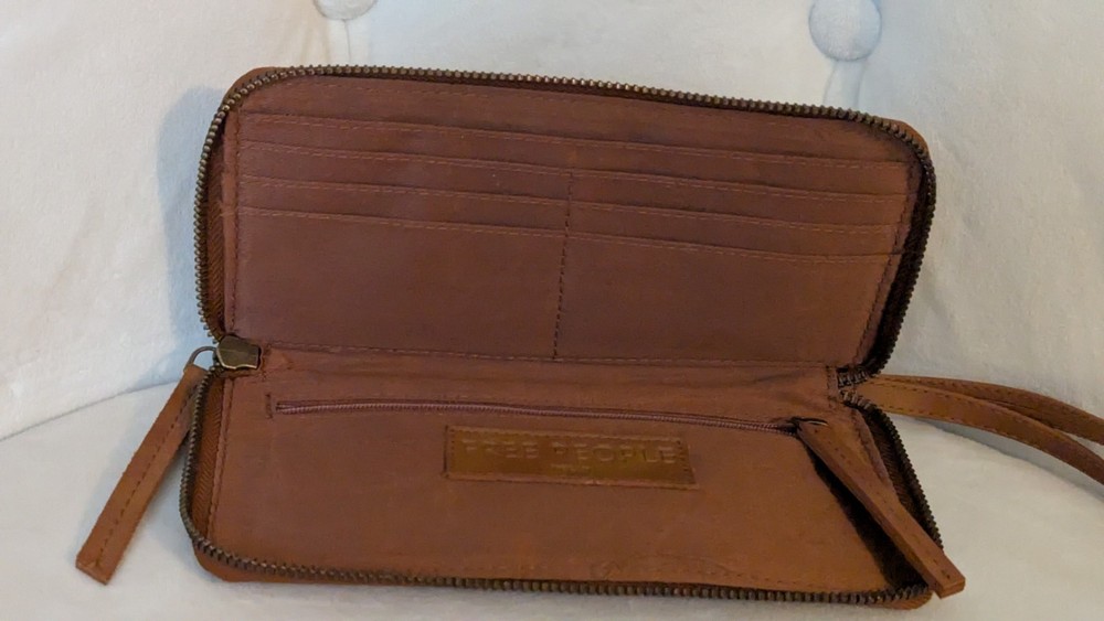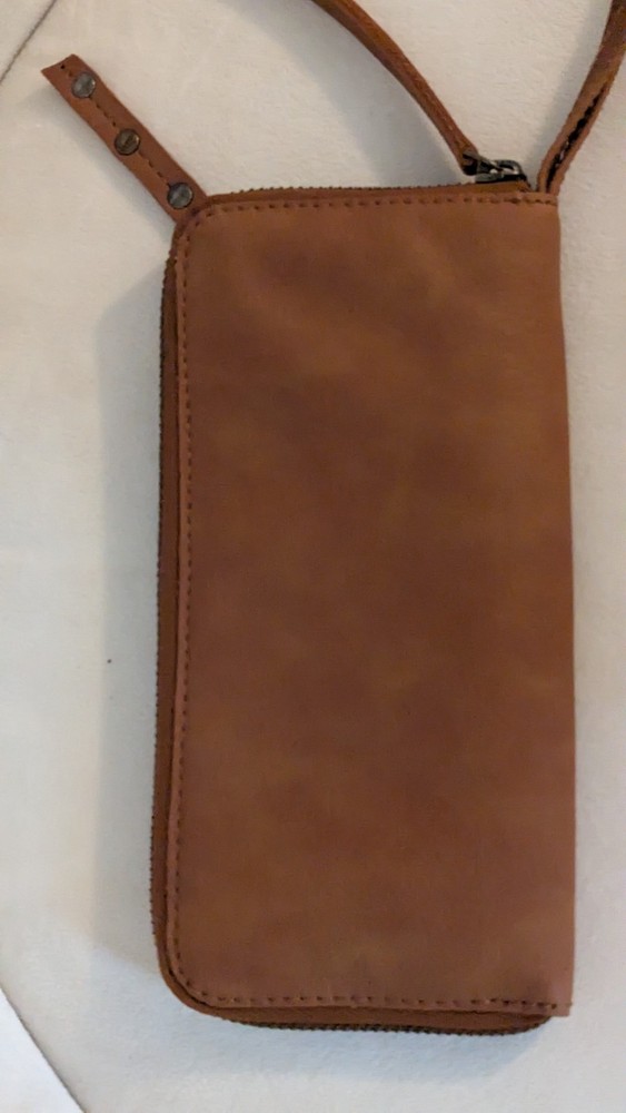 NEW Free People Wallet Brown Distressed Vegan Wristlet Strap Zip Closure. Shipped with USPS Ground Advantage.