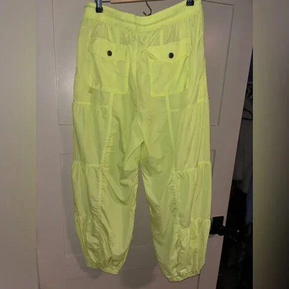 Take a hike in these functional and fun pants featured in a water-resistant nylon with shirred panels and elasticated cuffs. Fit: Relaxed, wide-leg fit, mid-rise, ankle-length Features: Water-resistant nylon, semi-sheer fabrication, stretchy elastic waistband with adjustable drawstring, shirred paneling, elasticated cuffs, breathable design Why We <3 It: Made for medium-impact activities and your favorite hikes, these are more than just your average wide-leg pants. Care/Import Machine Wash Cold Import Size + Fit Measurements for size small Inseam: 28 in Waist: 29.5 in Hips: 43 in Rise: 11.5 in Contents 100% Polyamide
