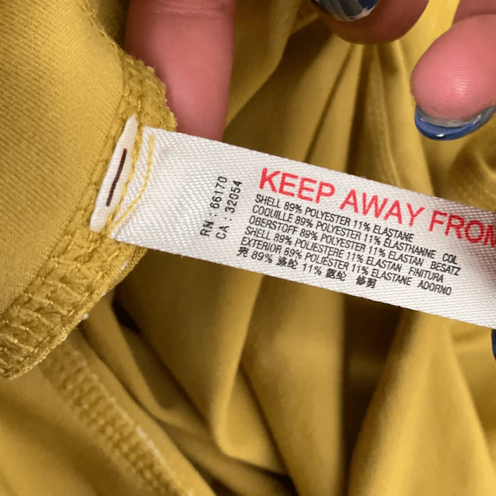 Free People Movement You’re A Peach Leggings Perfect for anything from a nighttime run to your morning yoga class, these squat-proof leggings are both flattering and functional. The fit: High-rise waist, ⅞ cropped ankle The fabric: Sweat-wicking; ultra-compressive; reinforced waistband The features: Squat-proof, figure-flattering reflective trim, ruched ankles Best for: Your sweatiest HIIT workouts in the gym or outdoors Zipper pocket Knees show wear, see photo Color: Yellow Size: Medium Fair Condition