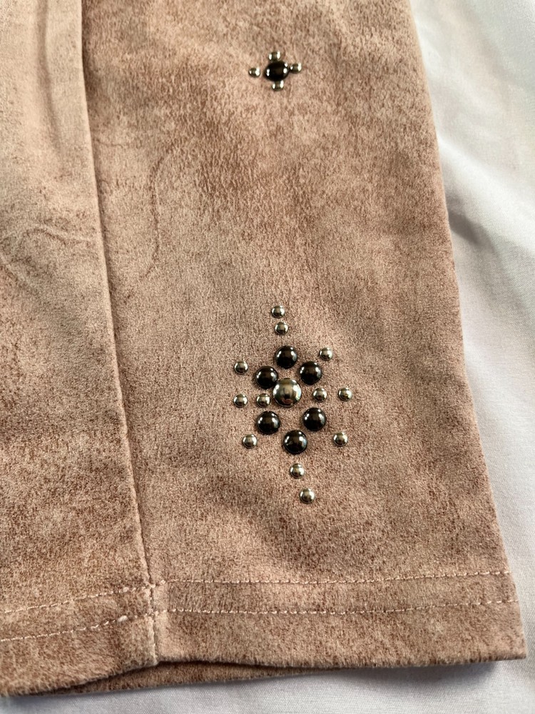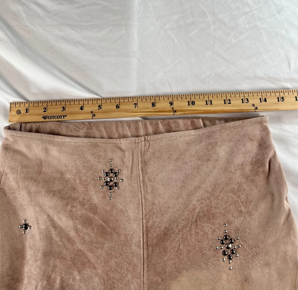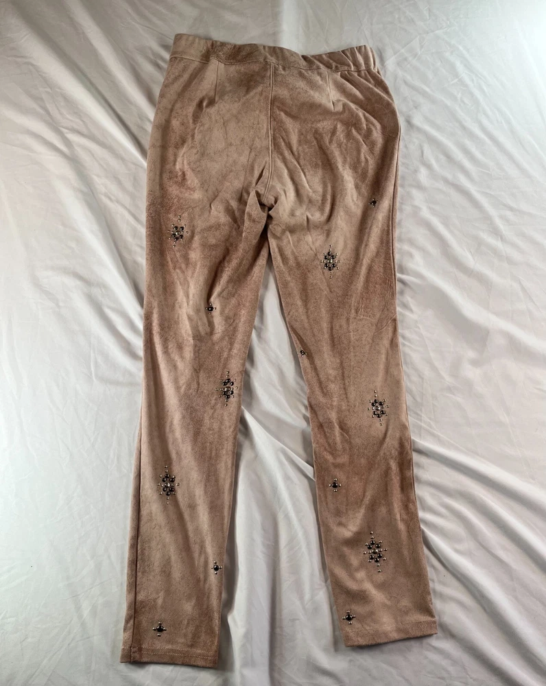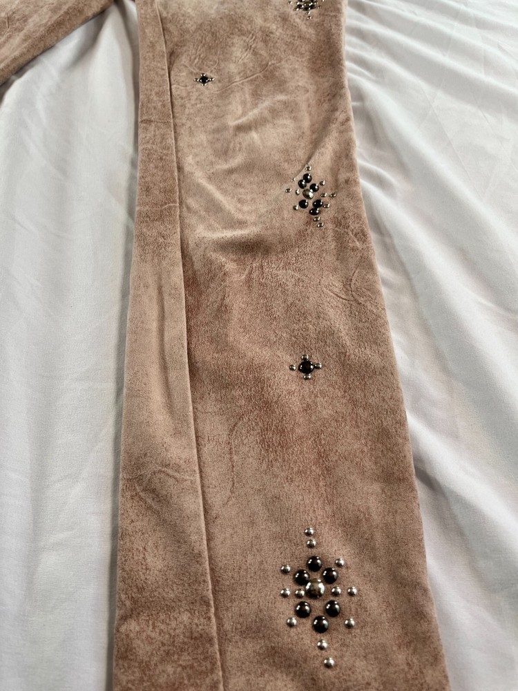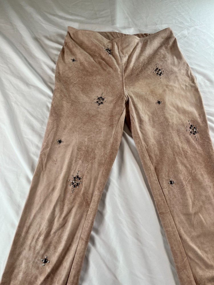 Elevate your style game with these Free People Vegan Cropped Pants in size 26. The beige color and faux suede fabric type make these pants perfect for any occasion, whether it's a party or a casual day out. The high rise waist and pull-on style add comfort and convenience, while the studded accents give them a trendy edge. These pants are made of a polyester blend and have a 27-inch inseam, making them a great choice for any season. Great condition. No rips, tears, stains or smell. **MEASUREMENTS IN PHOTOS** **FAST FLAT RATE SHIPPING**