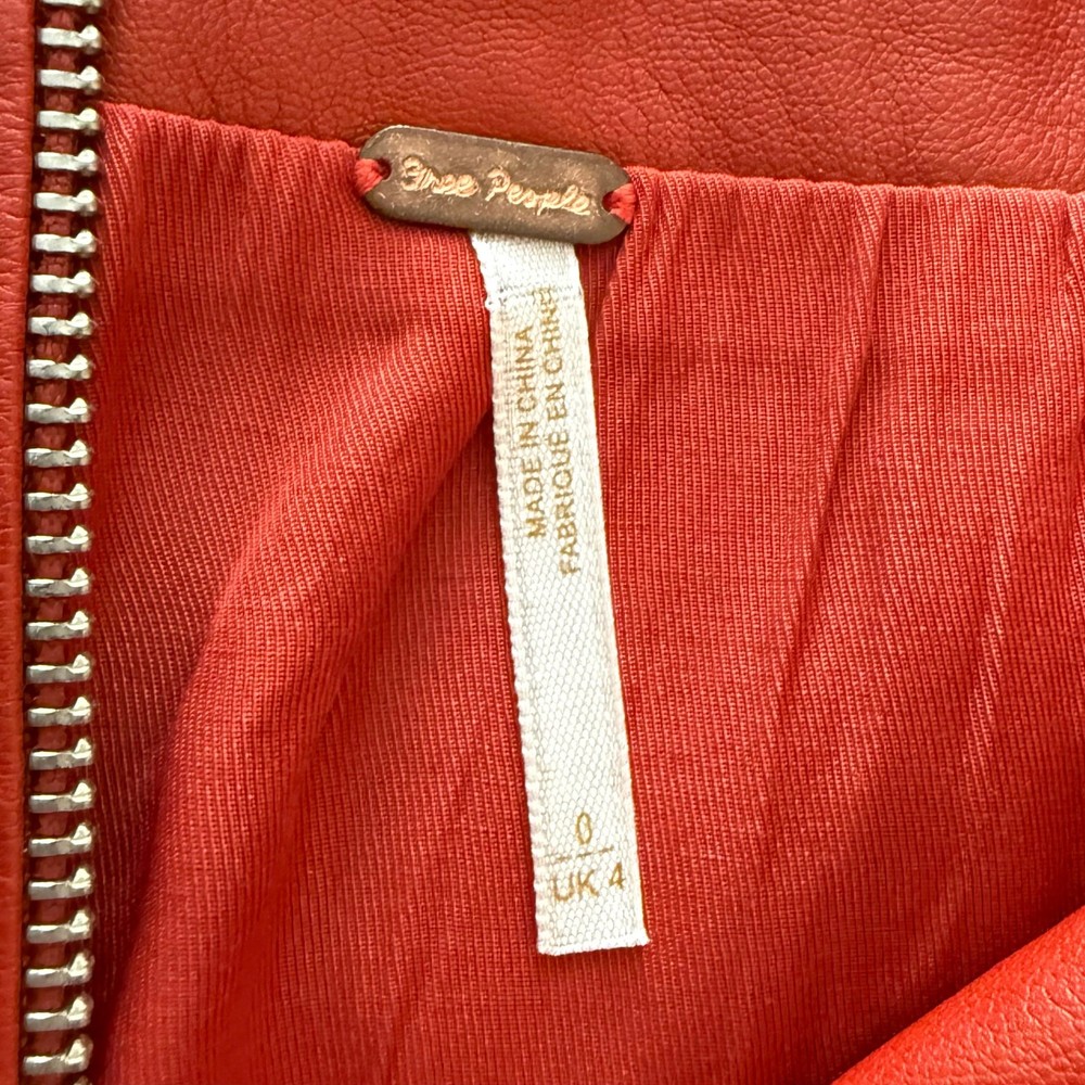 Free People Skirt Women’s Size 0 Red/Orange Zip Front Faux Leather Mini No flaws. Please see photos.