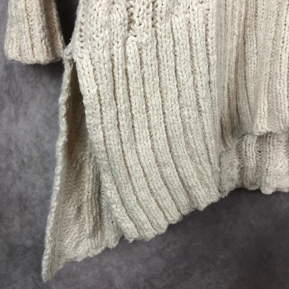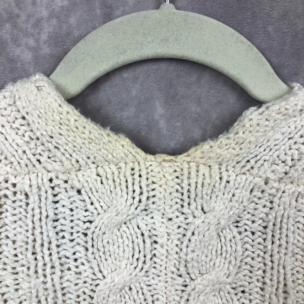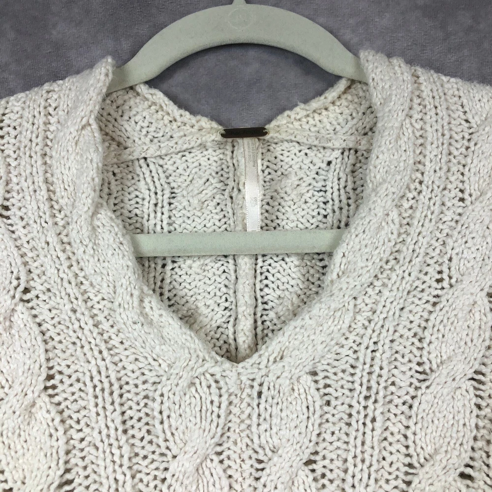 Free People Sweater Womens XS Cream Ivory Cable Knit Tunic V Neck Cotton Beachy