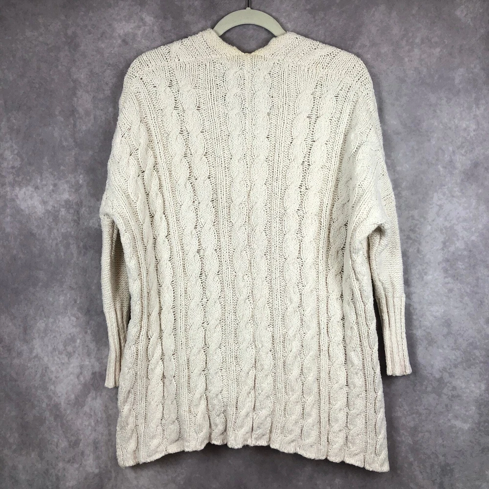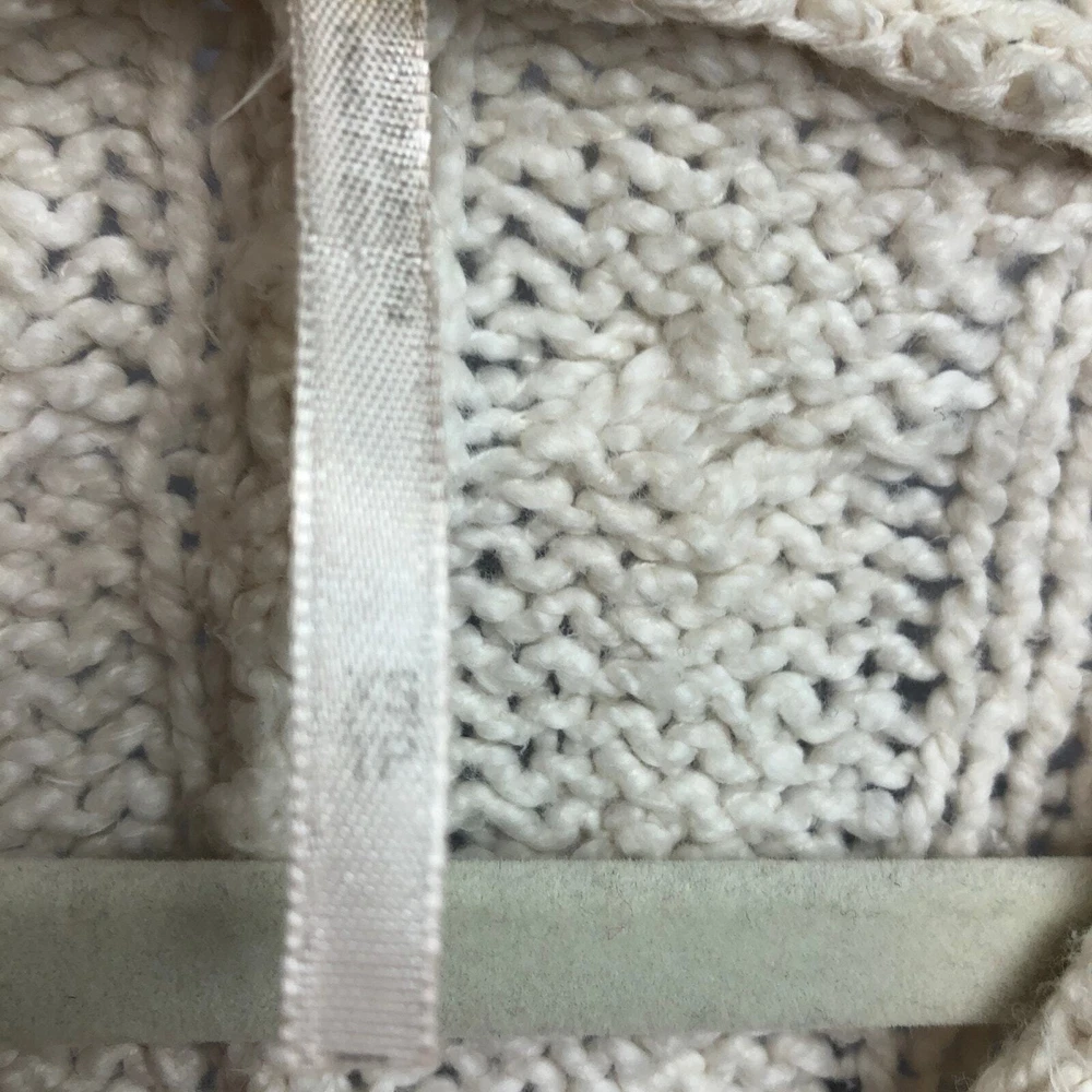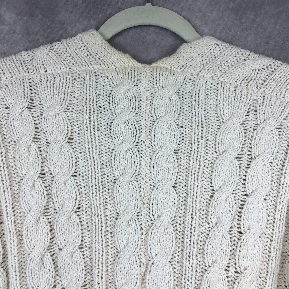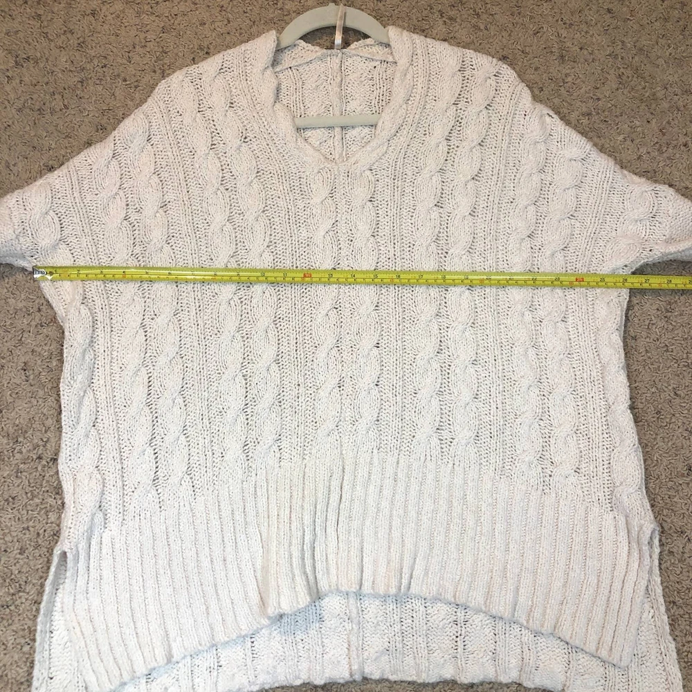 Free People Sweater Womens XS Cream Ivory Cable Knit Tunic V Neck Cotton Beachy