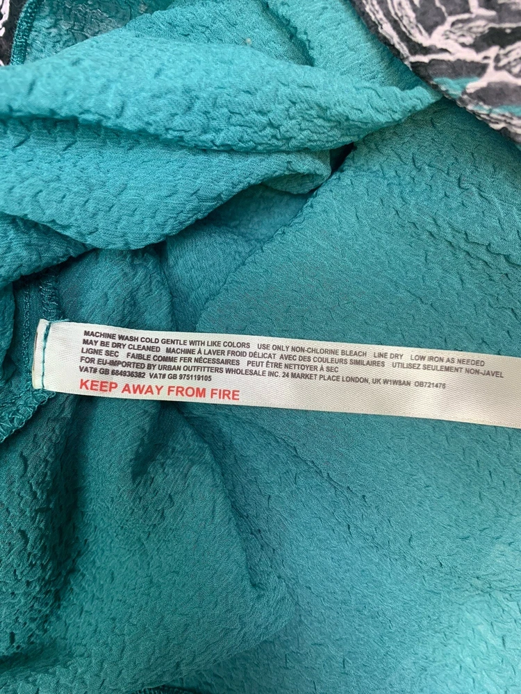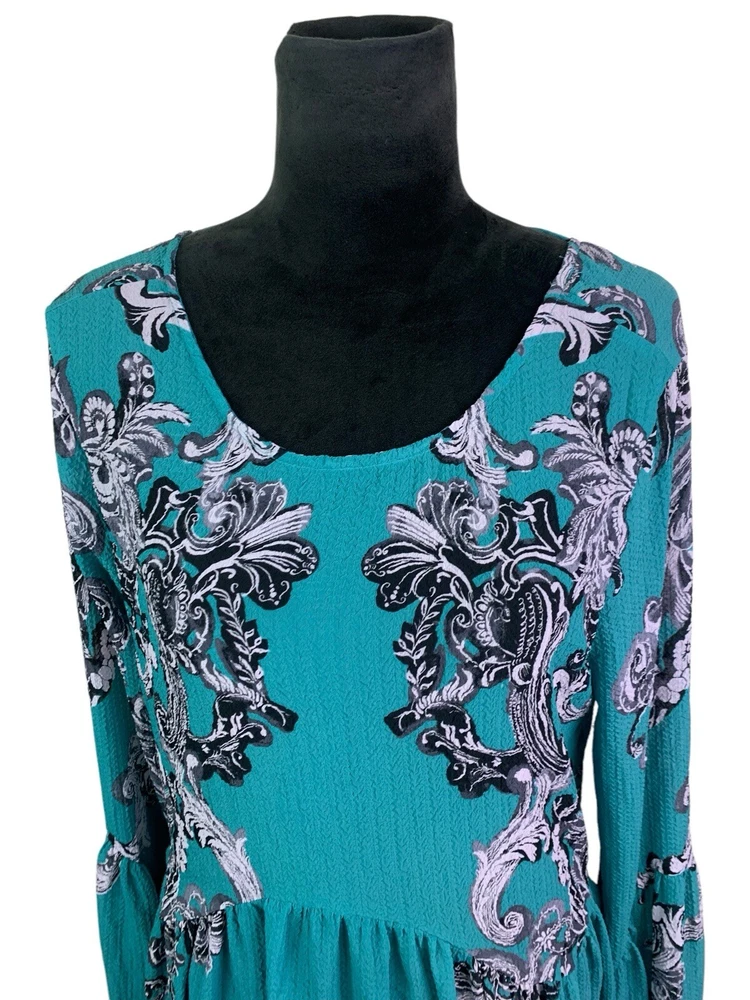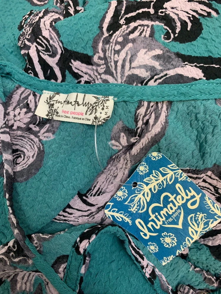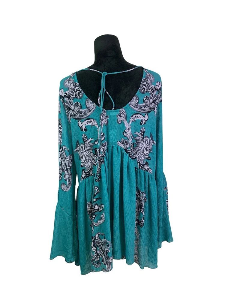 Color: Green Material: Polyester Vintage: No Size Type: Regular Accents: Ruffle, Pleated, Strap, Bow Style: Mini, Shirt Dress Fabric Type: Chiffon Character: Jade Season: Fall, Spring, Summer Pattern: Paisley Occasion: Casual, Party/Cocktail, Travel Department: Women Brand: Free People Features: Sheer, Lightweight Sleeve Length: Long Sleeve Sleeve Type: Bell Sleeve Dress Length: Short Closure: Tie Neckline: Scoop Neck Size: M Theme: Bohemian