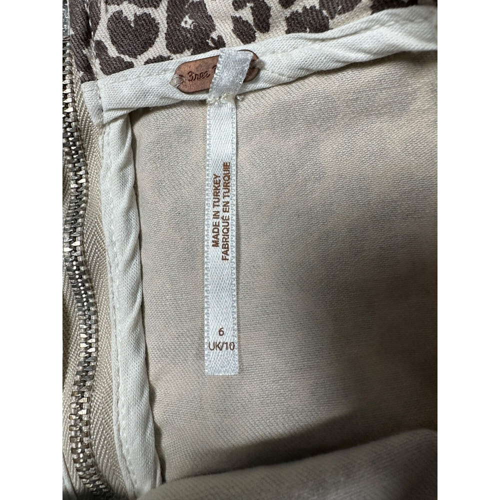 Free People Tea Combo Mini Skirt Size 6 Leopard Print Zipper Short Going Out