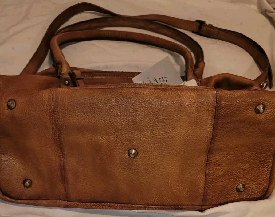 This beautiful Free People We The Free Emerson Tote Saddle is perfect for any fashion-forward woman. The bag is made of high-quality leather in a rich brown color, with a gunmetal hardware accent. It features a zip closure and a detachable strap for versatile carrying options. The interior is lined with soft cotton and features a spacious main compartment with a width of 16.5", a height of 12", and a depth of 7". The bag also comes with a matching brown leather handle/strap, adding a touch of elegance to the overall design. This tote is part of the Free People product line and is perfect for any occasion. The tote has a comfortable, slouchy, and supple leather feel. It has a worn leather fabrication. Which makes it pretty and unique. Exterior zipper compartments, exterior and interior pockets, buckle details, two top handles, detachable and adjustable shoulder strap, zipper closure, and branded tag.