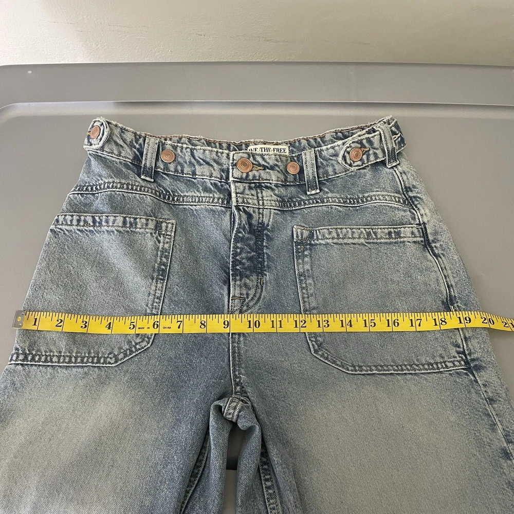Free People We The Free Women’s Palmer Cuffed Jeans in La La Land Size 28 OB1824199 Button Fly Festival Bohemian Hippie Baggy Relaxed Fit Adjustable Oversized