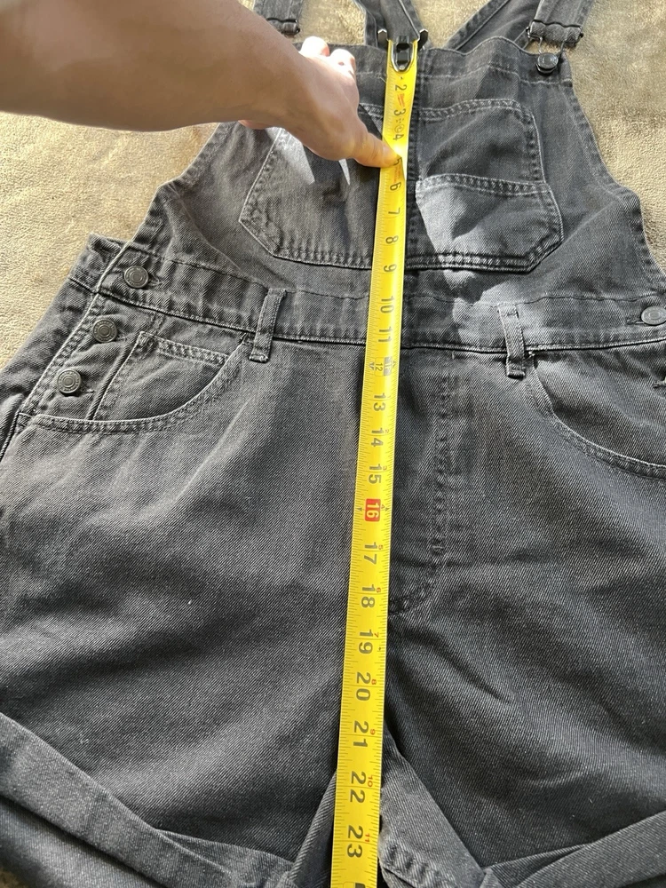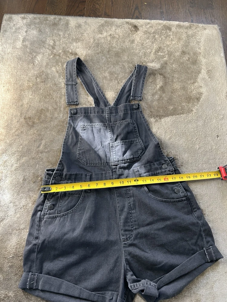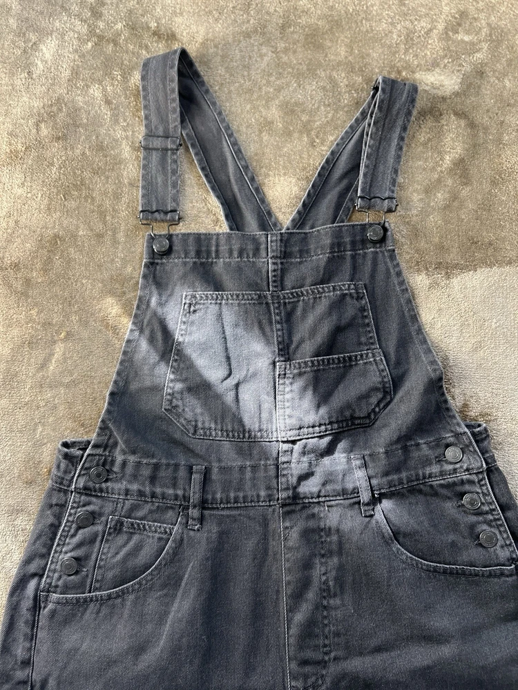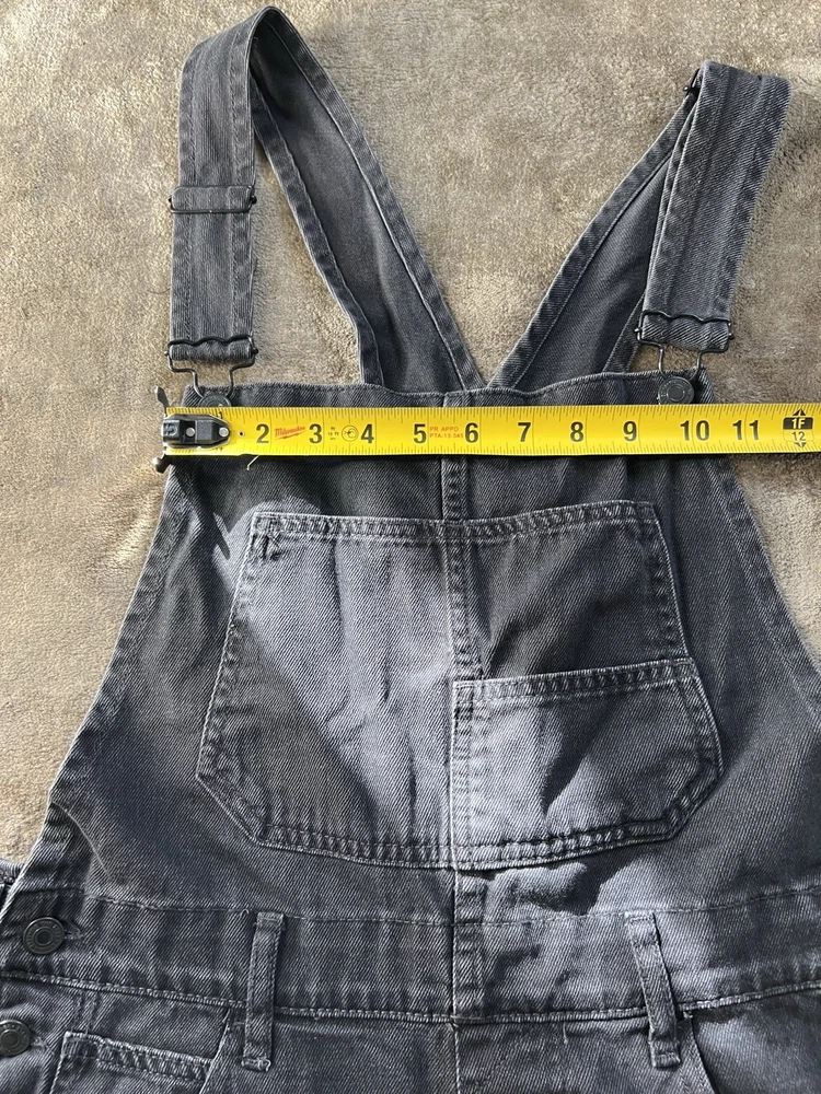 Free People Ziggi denim overalls in a versatile dark charcoal/black wash. Classic workwear-inspired design with adjustable shoulder straps, side button closures, and multiple functional pockets. Structured yet comfortable cotton denim that’s easy to style year-round over tees, knits, or tanks. Designed in Italy with quality construction and timeless Free People styling. ⸻ DETAILS • Brand: Free People • Label: Ziggi • Size: Medium • Color: Dark charcoal / black • Fabric: Cotton denim • Designed in Italy • Made in Morocco • Style: Denim overalls / dungarees ⸻ CONDITION Excellent pre-owned condition. No holes, stains, or repairs. Clean wash with minimal wear. All hardware and straps fully functional. MEASUREMENTS (laid flat, approx.) • Bib width (top): ~11.5” • Waist (across at side buttons): ~16” • Rise (top of bib to crotch seam): ~16” • Hip (approx., below buttons): ~18” • Short inseam: ~4.5” • Leg opening (each): ~11”