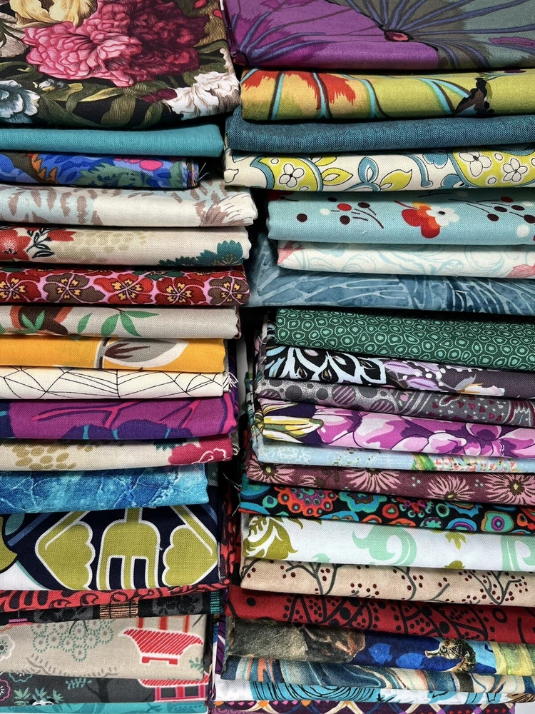 One pound of Cotton Quilting Fabric - Scrap Bag - Scrappy Quilt - Approximately 9 yards total by weight of Fabric Scraps What you see in the photo is what you get. Fantastic assortment of unique pieces, most rare and out of print. All quilt shop quality. Most pieces are around 9-10 inches in length (sometimes less, sometimes more) and full width of the fabric (42"). I threw in a few strips extra, so it's about 4 oz or so over 3 lbs. These are nice sized pieces that would be perfect for any craft or quilting project. I think you will love this great bundle of fabric for your creations. Brand new, clean and nicely pressed, fabulous colors and designs. Only the best 100% cotton fabrics, never laundered, like new. I AM HAPPY TO COMBINE SHIPPING ON MULTIPLE ORDERS. WAIT FOR REVISED INVOICE AFTER AUCTION ENDS.