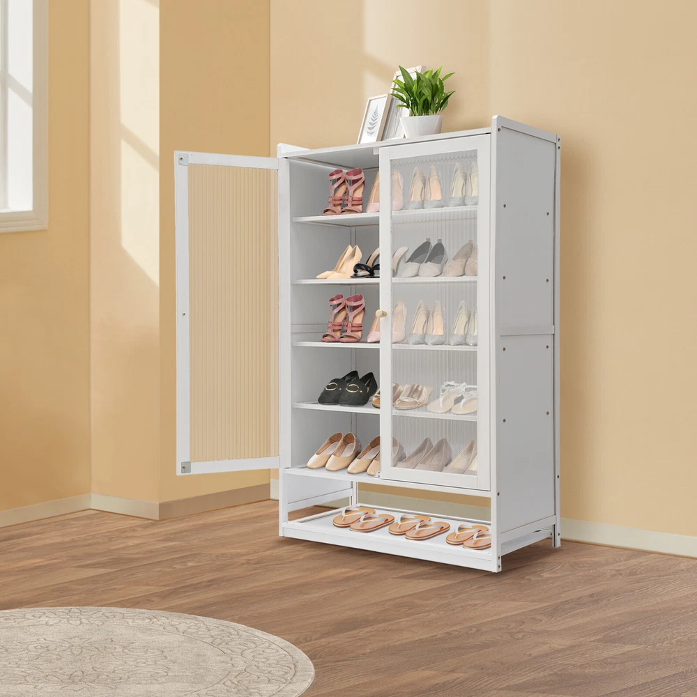 6-Tier Foldable Shoe Rack Storage Organizer with Doors Holds 12 Pairs