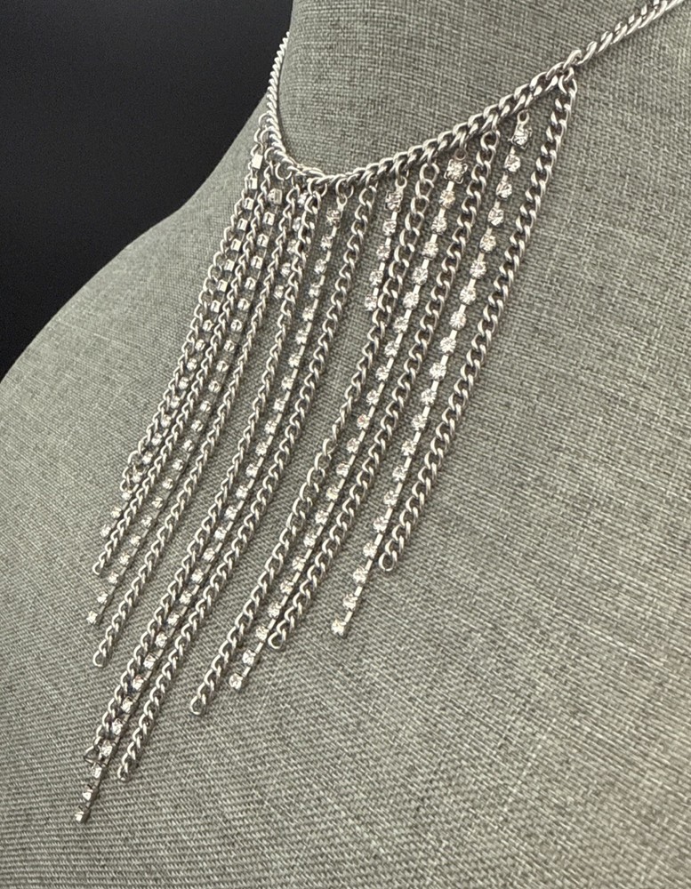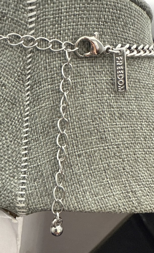 UPC:Does not applyCountry/Region of Manufacture:UnknownChain Type:UnknownColor:SilverHandmade:NoBrand:FreedomLength (inches):12.5 InSeller Warranty:YesAntique:NoTheme:BeautyMain Stone Width:1/16 InVintage:Yesgtin13:Does not applyNumber of Gemstones:NumerousMain Stone:RhinestonesCustomized:YesMain Stone Depth:UnknownStyle:BeautyMetal:Silver ToneGemstone Clarity Grade:UnknownWholesale:NoMain Stone Shape:RoundPendant Shape:NoneMain Stone Treatment:UnknownCountry of Origin:UnknownFeatures:AdjustableMain Stone Length:1/16 InMain Stone Creation:UnknownMain Stone Color:WhiteSigned:YesClosure:LobsterMPN:UnknownCut Grade:UnknownOccasion:AllSecondary Stone:NonePendant/Locket Type:NoneMaterial:Metal, RhinestonesBase Metal:UnknownMetal Purity:UnknownType:Beaded/ChainSizable:YesEra:UnknownNecklace Length:12.5 InSetting Style:Prong