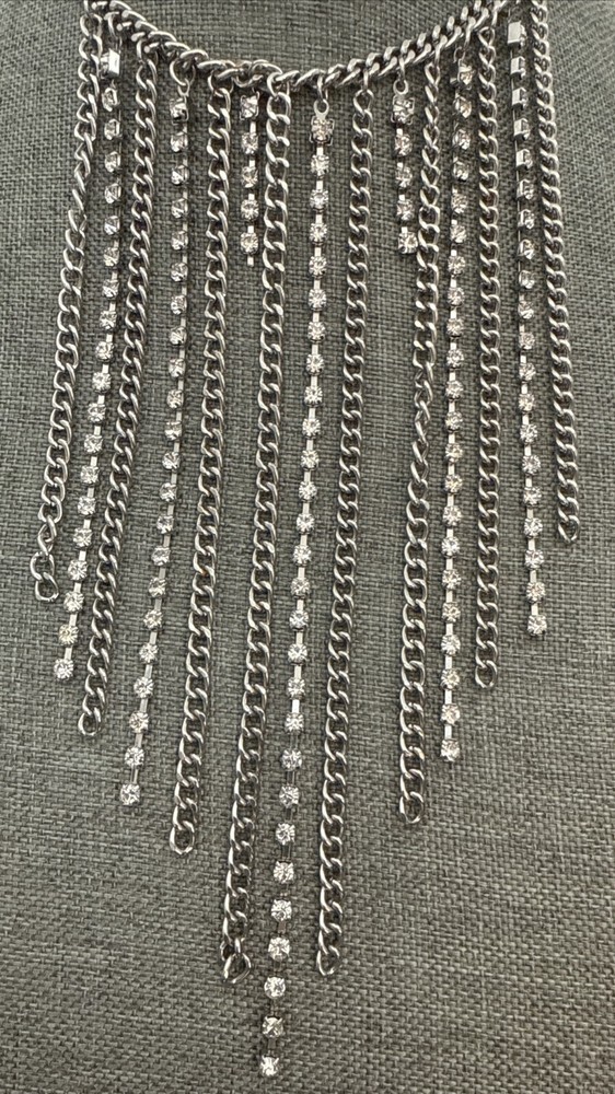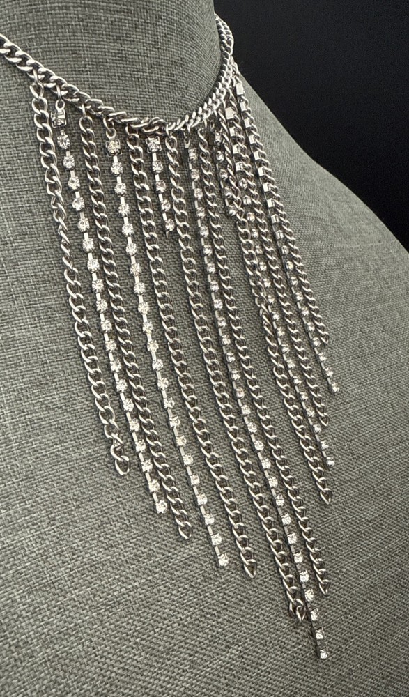 NECKLACE Freedom Silver Tone Choker Dangling Chains & Rhinestones 12.5 Inches 3 Inch Extension See Photos (5523)