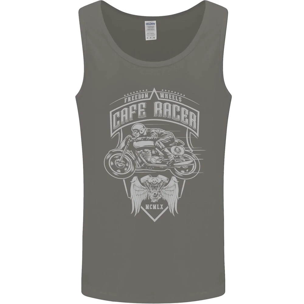 Freedom Wheels Cafe Racer Biker Motorcycle Mens Vest Tank Top