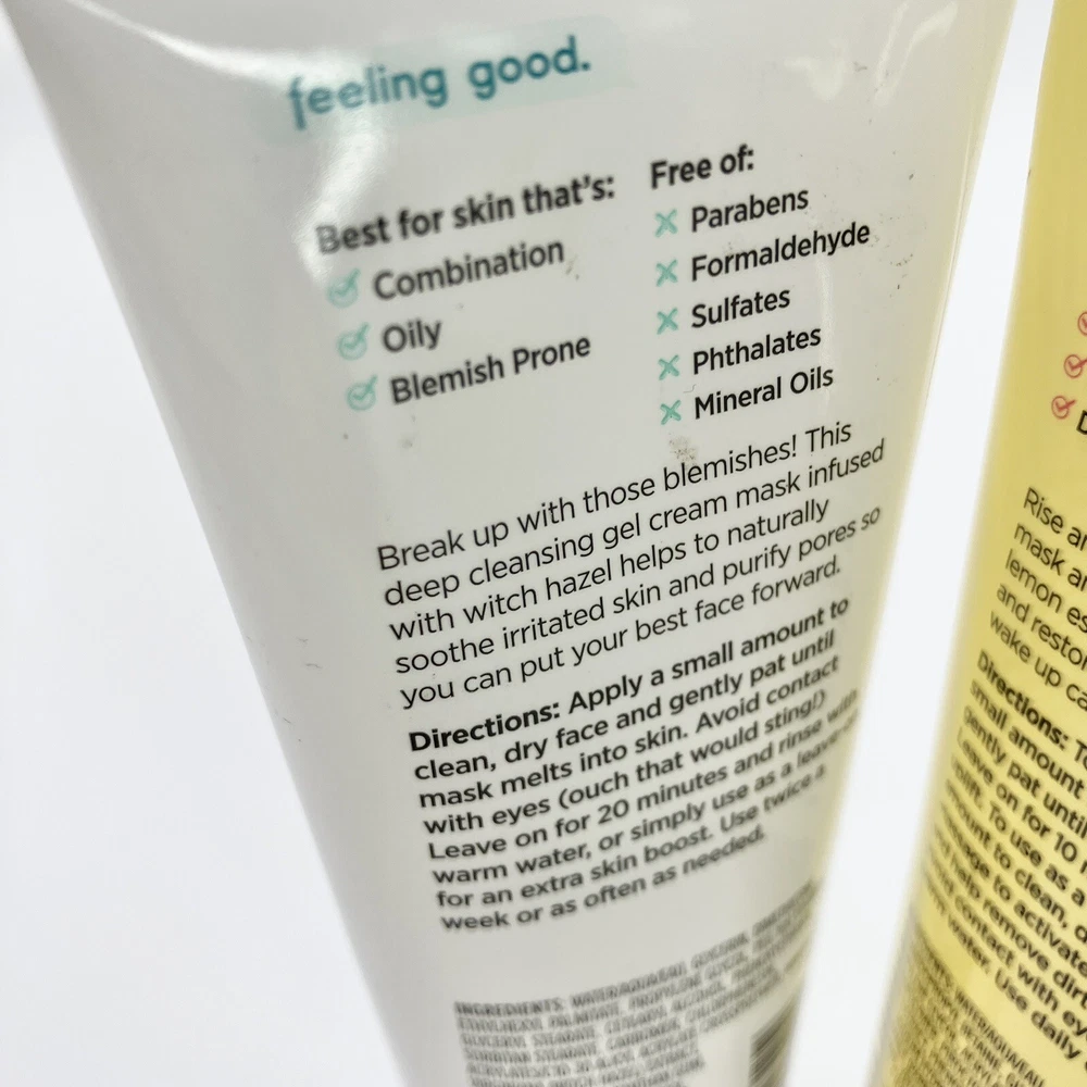 Freeman Beauty Purifying Cream Face Mask & Energize Jelly Mask 3 fl oz Energize Jelly Mask: Rise and Shine! This dual action jelly mask and cleanser infused with yuzu and lemon essential oils helps to energize and restore the skin barrier for a perfect wake up call. Purifying Cream Mask Break up with those blemishes! This deep cleansing gel cream mask infused with witch hazel helps to naturally soothe irritated skin and purify pores so you can put your best face forward. ****SHIPS NEXT BUSINESS DAY*****