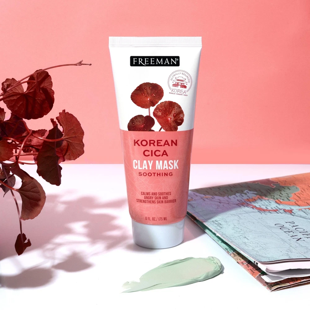 The Freeman Korean Cica Clay Mask is the perfect skincare product to add to your routine to calm and soothe skin for a healthy, glowing complexion. This clay mask helps calm angry, irritated skin while also naturally strengthening your skin barrier. Korean Cica is great for all skin types- especially acne prone skin. This facial mask is easy to use- just apply it to your face and neck area and leave it on for 10 minutes. Then rinse it off with warm water. The Freeman Exotic Blends Collection brings you face masks from around the world that help you boost your skincare routine for a healthier complexion. As with all our Freeman products, this clay face mask is made with clean ingredients and is never tested on animals. Since 1976, Freeman has created feel-good formulas that seriously work (without losing all the fun!). We believe skincare belongs to everyone and strive to democratize beauty with affordable products. In our minds, clear skin = a clear conscious. Our top priority is ensuring our products are efficacious and full of good-for-you ingredients. Our new formulas are always dermatologist tested, free of parabens, sulfates, phthalates and mineral oil. We love our furry friends, too, and are proudly cruelty-free and never test on animals. Freeman Korean Cica Clay Mask is a both a clearing and calming face mask that soothes irritated skin and brightens for a healthier complexion Facial mask includes ingredients which help to calm angry skin and naturally strengthen your skin barrier. Korean Cica helps you get rid of acne and redness for clearer skin Clay face mask is easy to use – just apply product, leave on for 10-15 minutes, then rinse off with warm water. Mask is good for 10-12 uses per tube Clay mask can be used twice a week or as often as needed. Perfect for all skin types - normal skin, oily skin, combination skin, dry skin, breakout prone skin, and even sensitive skin. Discontinue use if irritation occurs Freeman Exotic Blends Collection allows you to vacation around the world with your skincare products. Set flight to Korea, Japan, Hawaii, India, and more to experience all of this collection’s benefits Made with clean ingredients free of parabens, sulfates, silicone, phthalates, and mineral oils. We aim to provide quality, affordable skincare- No harsh chemicals & 100% Cruelty Free and Vegan - Freeman products are never tested on animals