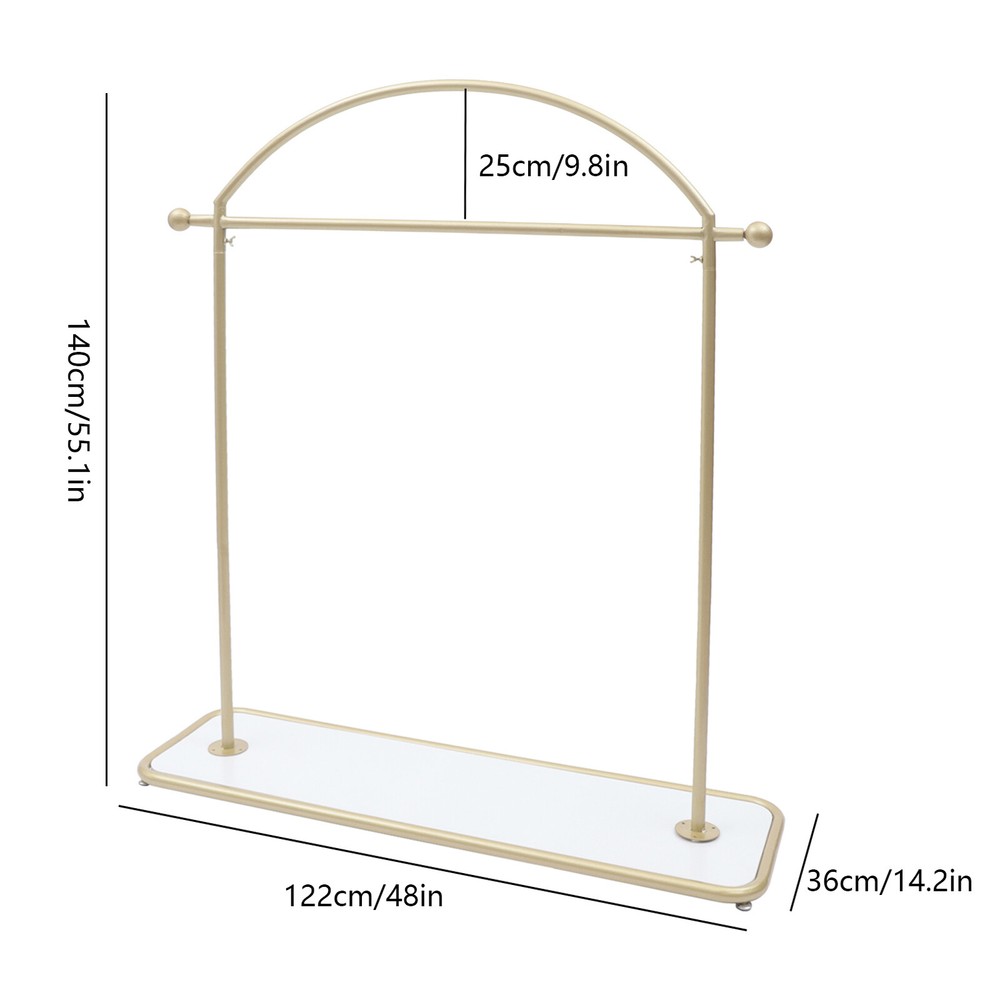 Freestand Clothing Rack Solid Wood Garment Shelf Rust-proof & Adjustable Footbed Description Are you still looking for a suitable garment rack? Our garment rack is made of iron , which is strong and durable. It has a solid wood shelf at the bottom , which can be used to place shoes or folded clothes, making good use of space. It can also be used to place flower pots and other decorative items to decorate the space. Its surface is treated with nano baking paint, which can be well waterproof and rust-proof , macking service life longer. Its minimalist design will be your ideal choice. Key Features Adjustable Footbed : The footbeds are flat and smooth in shape to prevent scratching the floor. At the same time, it can be adjusted in height to keep stability on uneven floors. It can be raised by 1.5cm overall. High-quality Material : The garment rack is made of high-quality iron with thickened tube walls. The iron material is strong and not easily deformed, making the service life longer. Versatile Style: The garment rack's simple shape design and smooth lines highlight the geometric beauty, so it can be perfectly integrated into a variety of decoration styles. Easy Installation : The simple structure and industrial design make the clothing rack easy for you to install. You can do the installation by yourself independently. Convenience : The garment rack provides more space for all your seasonal clothes. It effectively prevents creases in your clothes after folding and saves you time from ironing. Space Saving : The garment rack has a 48-inch-long hanging rod , so you can hang a lot of clothes. The rack also has a shelf for shoes or folded clothes. It is a good space saver for you. Easy to Clean : The surface of the garment rack is treated with nano baking paint, making the surface flat and smooth, so it is easy to clean. You just need to wipe it with a wet rag. Excellent After-Sales Service : We aim to provide quality products and services. If you have any problems, please feel free to contact us. We will reply and solve the problem for you as soon as possible. Details Nano Baking Paint: The surface of the hanger is treated with nano baking paint, which is waterproof and wear-resistant. At the same time, it prevents the iron rod from rusting and prolongs the use time. Bottom Shelf: The bottom of this product is designed with a shelf made of solid wood , which can be used to place shoes or folded clothes to save more space for you. It can also be used to place flower pots or other decorative items to decorate the space. Application Our products can be widely used in homes, clothing stores, hotels, garment factories, and other places where there is a need to hang clothes. Specification Material: Iron+Wood Color: Golden Packing Size: 125*10*37cm/49.2*3.9*14.5inch Product Size:122*36*140cm/48*14.2*55.1inch Bottom Shelf Size: 122*36cm/48*14.2inch Net Weight: 7.5kg/16.5lbs Gross Weight: 8kg/17.6lbs Package Included 1* Bottom Shelf 2* Support Rods 1* Curved Hanging Rod All Accessories for Use Notes Please allow the slight color difference caused by the shooting light and 1-3cm error due to manual measurement, and make sure you do not mind before ordering. Payment Delivery details Terms of sales About us Contact us Payment We accept ebay payment 。 Fees such as import duties, taxes are not included in the item price or shipping costs. These charges are the buyer's responsibility. Delivery details Shipping: 2-9 working days to: USA Terms of sales We maintain high standards of excellence and strive for hundred percent customer satisfaction. Feedback is very important to us. We hope that you contact us immediately before you give neutral or negative feedback, so that we can address your concerns. It is impossible to address issues if we do not know about them! About us Your satis faction is our ultimate goal. We work hard to earn your trust and future business. Our certified technicians have tested each item before shipping. The unit comes with 1 year limited warranty on all manufacturing defects. a) If you receive a defective item, you may return it or ask for a discount. Please contact us within 14 days after you receive the package. b) What you returned must be intact and in its original packaging as re? u. Customer is responsible for shipping costs of the returned item. c) We will cover the cost of shipping back t with the shipping rate indicated in the registration page. We will send you a new unit or refund the full payment you paid. Thank you. Contact us Business Hour Business Hour: Monday To Friday: 8:30 AM to 5:00 PM (Beijing China time) Due to time zones, our reply to your questions may not be immediately. But within above working time, we will reply your email within 24 hours. If it's non-workdays, please kindly be patient and wait till Monday. Please contact us with ebay message. Please feel free to contact us if you have any questions. Monday To Friday: 8:30 AM to 5:00 PM (Beijing China time) Due to time zones, our reply to your questions may not be immediately. But within above working time, we will reply your email within 24 hours. If it's non-workdays, please kindly be patient and wait till Monday. Please contact us with ebay message. Please feel free to contact us if you have any questions. On Dec 10, 2025 at 00:59:45 PST, seller added the following information: