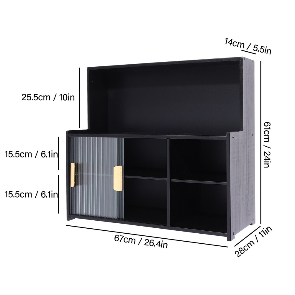 26.4*11*24 inch Kitchen Pantry Sideboard Freestanding/Countertop Storage Cabinet Description Cleanness and tidiness are a good attitude towards life and will put you and your family in a good mood. Our kitchen pantry sideboard is made of high-quality material with sufficient storage space and a beautiful and practical design, allowing you to neatly and efficiently organize your belongings and make you feel organized and relaxed. Say goodbye to a cluttered room and enjoy a neater, more efficient life! Key Features Sturdy and Durable: It is made of high-quality bamboo, glass, and MDF with a painting process, which is durable, eco-friendly, and rust-resistant , ensuring its beauty and long-time use. Life Assistant: The 2-tier design can effectively organize kitchenware, books, towels, water bottles, mugs, and other household items. The wide and practical platforms can hold potted plants, clocks, and photo frames as decoration. High Flexibility: You can adjust the height of the tiers (2.7 inches up and down) by pulling out the pins to fit the items you need to put in them. Thoughtful Design: The clear and sliding door design is easy to open, and can also elegantly display the internal items for easy access. Plus, the sealed back panel effectively protects against dust, moisture , and insects . Minimalist Style: The black color scheme combines rectangular shapes with clean lines to create a minimalist aesthetic, highlighting a strong modern appeal and adding a touch of sophistication to your room. Simple Installation: With complete installation parts, and a simple structure, you can assemble it yourself and enjoy the fun of the installation process. Easy to Clean: Thanks to its smooth surface, simple construction, and dustproof doors and panels, you can wipe it clean with a damp rag. Ideal Gift: Thanks to its practicality, it will make a fine gift for family, friends, and loved ones on Christmas, housewarming, birthdays, anniversaries, and holidays. Protective Package: We have used pearl cotton and foam to wrap this product, designed to minimize damage to the product during shipping. Details Convenient Handles: Each cabinet door has an ergonomic handle to help you push both doors more smoothly . Round Edges: Smooth, burr-free edges are not only comfortable to the touch, but also enhance safety in use. Application It is ideal for bedroom, study, playroom, entrance, living room, kitchen, bathroom, toilet and so on. It can be used to store cutlery, mugs, jugs, alarm clocks, potted plants, household items, snacks, towels, tissues, books and other daily necessities. Specification Color: Black Style: Modern Shape: Rectangular Process: Painting Material: Bamboo+Glass+MDF Installation Type: Floor Standing Assembly Required: Yes Adjustable Height: 7cm/2.7in Each Tier Height: 15.5cm/6.1in Product Size: 67*28*61cm/26.4*11*24 inch Package Size: 76*33*13cm/29.92*12.99*5.12 inch Gross Weight: 11kg/24.25 lbs Net Weight: 10kg/22 lbs Package Included 1* Kitchen Pantry Sideboard Other Accessories for Assembly Notes Please check the product style and size before purchasing. Please note that this product does not include any other storage items. We recommend not placing excessively heavy items on it. Please allow the slight color difference caused by the shooting light and 1-3cm error due to manual measurement and make sure you do not mind before ordering. Payment Delivery details Terms of sales About us Contact us Payment We accept ebay payment 。 Fees such as import duties, taxes are not included in the item price or shipping costs. These charges are the buyer's responsibility. Delivery details Shipping: 2-9 working days to: USA Terms of sales We maintain high standards of excellence and strive for hundred percent customer satisfaction. Feedback is very important to us. We hope that you contact us immediately before you give neutral or negative feedback, so that we can address your concerns. It is impossible to address issues if we do not know about them! About us Your satis faction is our ultimate goal. We work hard to earn your trust and future business. Our certified technicians have tested each item before shipping. The unit comes with 1 year limited warranty on all manufacturing defects. a) If you receive a defective item, you may return it or ask for a discount. Please contact us within 14 days after you receive the package. b) What you returned must be intact and in its original packaging as re? u. Customer is responsible for shipping costs of the returned item. c) We will cover the cost of shipping back t with the shipping rate indicated in the registration page. We will send you a new unit or refund the full payment you paid. Thank you. Contact us Business Hour Business Hour: Monday To Friday: 8:30 AM to 5:00 PM (Beijing China time) Due to time zones, our reply to your questions may not be immediately. But within above working time, we will reply your email within 24 hours. If it's non-workdays, please kindly be patient and wait till Monday. Please contact us with ebay message. Please feel free to contact us if you have any questions. Monday To Friday: 8:30 AM to 5:00 PM (Beijing China time) Due to time zones, our reply to your questions may not be immediately. But within above working time, we will reply your email within 24 hours. If it's non-workdays, please kindly be patient and wait till Monday. Please contact us with ebay message. Please feel free to contact us if you have any questions. Brand Unbranded Type Cupboard Item Height 24in Item Length 26.4in Item Width 11in Material Bamboo+Glass+MDF Color Black Door Style Glass UPC Does not apply