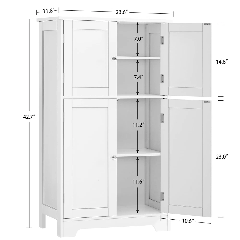 storage cabinet ⭐【Flexible Storage Space】 2 adjustable shelves can be set to 6 different positions, makes high bottle or crafts storage a non-issue. All your daily items, from books, magazines to office supplies, will be organized in order, offering you a tidy and enjoyable living room. ⭐【Versatile Cabinet】Whether you're seeking an extra storage cabinet to tuck away your overflows, a kitchen cabinet to put condiments, bread basket, bowls, plates, a tall bookcase to serve your reading, files and office supplies, an entryway cabinet to store gloves, scarves and pets supplies, or a bathroom cabinet to organize toiletries, this tall cabinet is the perfect pick! ⭐【Good Quality & Safe to Use】Made of high quality engineered wood, this storage cabinet is super stable, no harm and odorless, bring a safe and healthy living environment for you. Well made in eco-friendly waterproof paint, suitable for wet environment. Meanwhile, an anti-tip kit helps secure cabinet to the wall, which can protect the safety of your family. ⭐【Easy to Assemble】 Due to the simple design, labeled accessories and detailed instructions, it only takes about 20 minutes, you can get a practical storage cabinet. ⭐【100% Satisfaction Service】Still worried? Trust us, the product quality and shopping experience is what we always pursue. We free provide 18 month warranty for quality problem, if you have any dissatisfaction with our product, please contact us by email, we will give 100% Satisfaction solution within 24 hours.