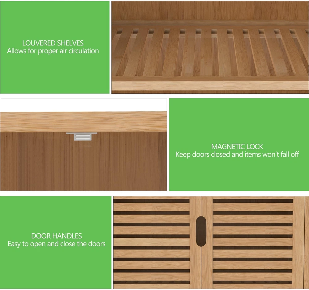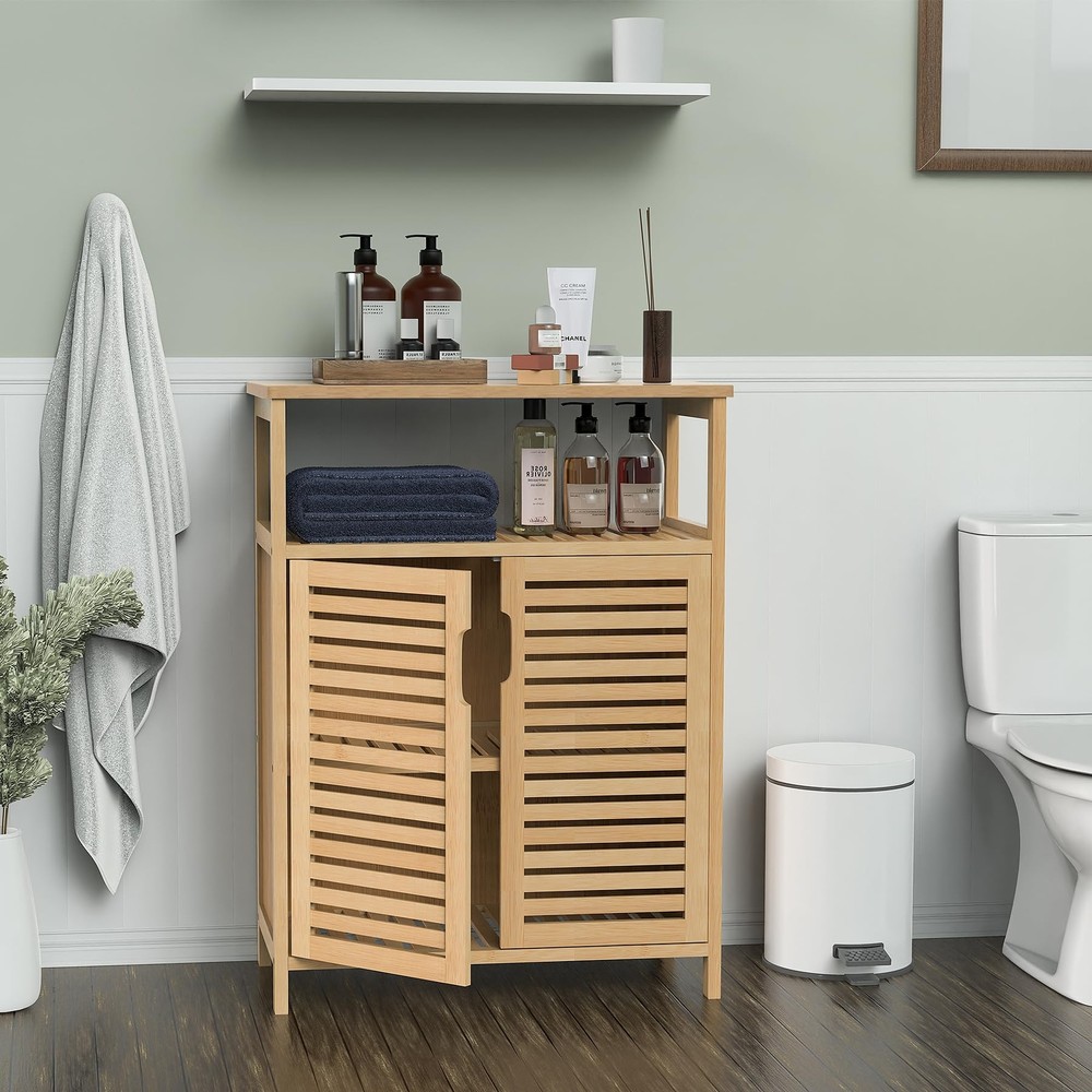 Bathroom Storage Cabinet, Freestanding Floor Cabinet with 2 Doors and Top Shelf for Kitchen, Entryway, Living Room storage cabinet offers functionality and elegance for various spaces, including bathrooms, living rooms, bedrooms, hallways, and kitchens. The warm tones and smooth finish of the bamboo create a visually appealing addition to any room. It is a versatile and aesthetically pleasing solution for organizing your home. This bamboo cabinet is suitable for various rooms , The design of the doors and shelf ensures access to stored items while maintaining a clutter-free appearance. Whether used in the bathroom to store toiletries or in the living room to organize books and media devices, this floor cabinet seamlessly blends into any setting. The combination of closed and open storage options ensure versatility and efficient use of space. The 2 doors open to reveal a spacious interior of this storage cabinet, allowing you to discreetly store items such as towels, toiletries, or other essentials. The top shelf is perfect for keeping your frequently used items within reach. Made of natural bamboo, This bamboo storage cabinet offers exceptional durability and stability. Bamboo is known for its strength and resistance to moisture, making it an excellent choice for bathroom or kitchen environments. The solid build ensures long-lasting performance, providing you with reliable storage for years to come. The package comes with all parts, the detailed instruction and all hardware needed, which allows you to finish the assembly in 20 minutes easily and quickly. If any missing or defective part, please do not hesitate to contact us for support. 1 SHIPPING Domestic Buyers - We have confidence in our products, but if you are not fully satisfied please contact us within 30 days of purchase and you will get full refund. - We ship within 3 business days of payment, usually sooner - We offer FREE shipping on all orders! - We only ship to the lower 48 states, no APO/FPO addresses or PO Boxes allowed International buyers – please note: Import duties, taxes, and charges aren't included in the item price or postage cost. These charges are the buyer's responsibility. - Please check with your country's customs office to determine what these additional costs will be prior to bidding or buying. * Order Cancellation Policy ** You can return a product for up to 30 days from the date you purchased it. 1. The seller reserves the right to cancel the special case only due to eBay cancellation fee. 2. The decision of seller is the final. 3. The seller will respond to the cancellation request within 2 business days. Please wait for the result of cancellation. 4. In case the cancellation is not completed by some reasons, the buyer can follow the options below to get the refund. 4.1 The buyer can reject the item when it arrives. 4.2 The buyer can send the item back to the seller within 30 days If the buyer receives item (USA Shipment ONLY). The seller will provide the FREE return label to the buyer when the buyer opens " Return Item" case on eBay by using the reason as "Change my mind" ONLY. 5. When buyer has placed the order. The order will be processed and completed by automatic warehouse system within 5 minutes. In case that buyer sends the cancellation request after 5 minutes of placing the order, the request will be rejected. **Sending direct message to cancel the order is not allowed for every case.* Return Policy For the return case - If buyer would like to return the items for refund or replacement, please CONTACT SELLER to receive the free return label from seller. The refund or replacement will be processed with the tracking number of return label which is provided by seller only. The other ways of return which are not approved by seller will not be processed for the refund or replacement.