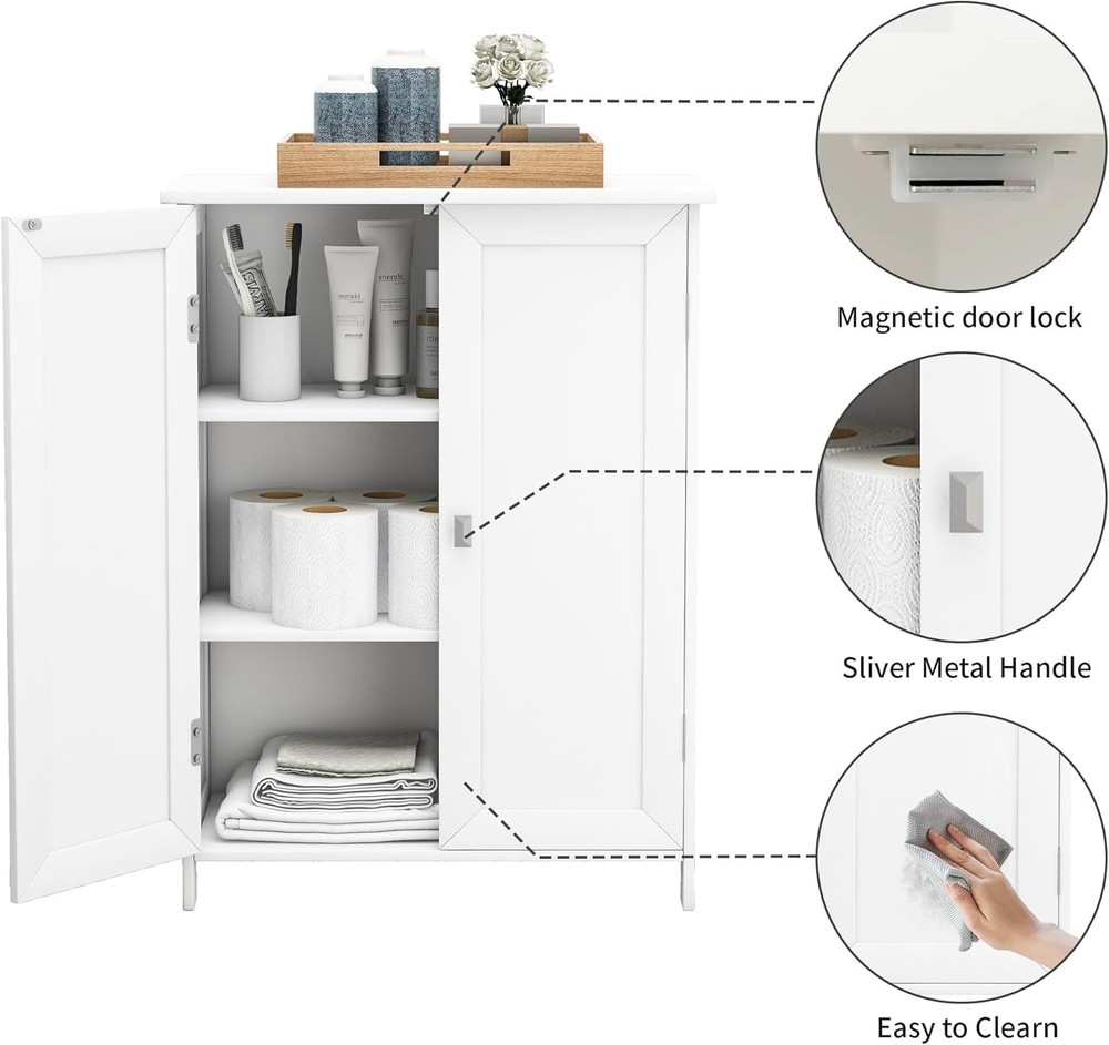 Product Description bathroom storage cabinet for Bathroom Kitchen Living Room and hallway The video showcases the product in use. The video guides you through product setup. The video compares multiple products. The video shows the product being unpacked. Bathroom Cabinet with Adjustable Shelf Merchant Video The unique Space-Saving Desgin, maximized the storage space. This white bathroom cabinet storage has clean lines and concise contours, creating an elegant atmosphere of modern living. Tltaroni bathroom cabinet with Adjustable Shelf and 2 Doors Unique Handles Strong Magnetic Door Adjustable Shelf On Aug 11, 2025 at 21:23:52 PDT, seller added the following information: