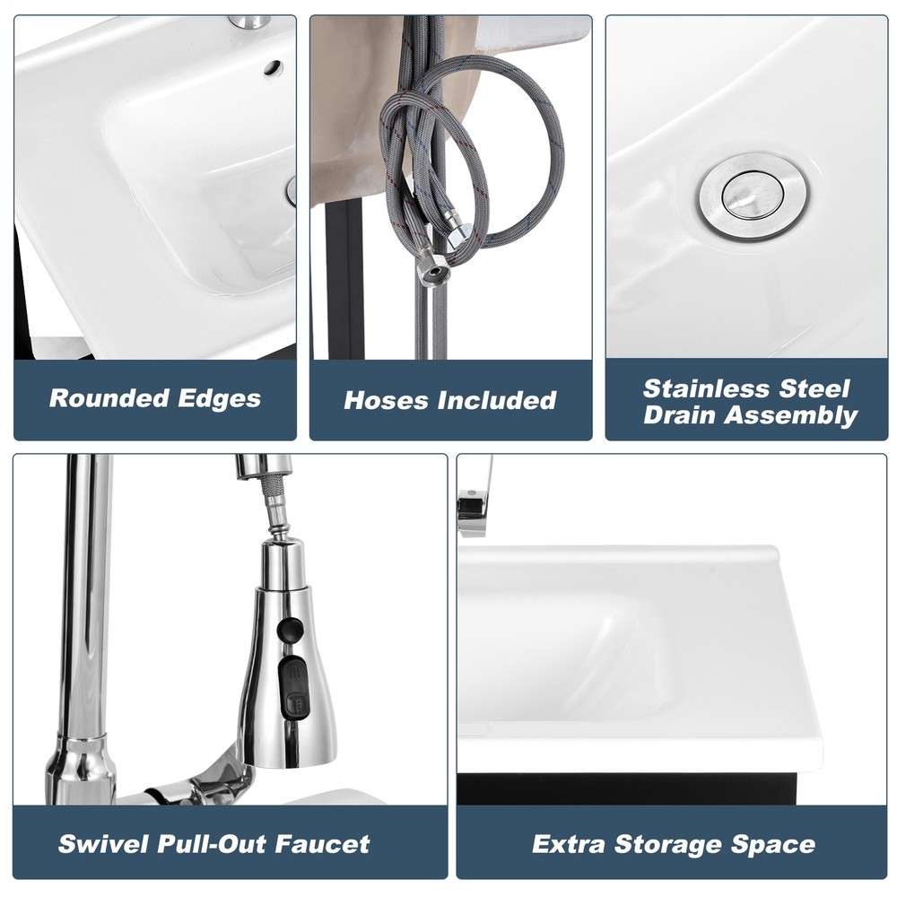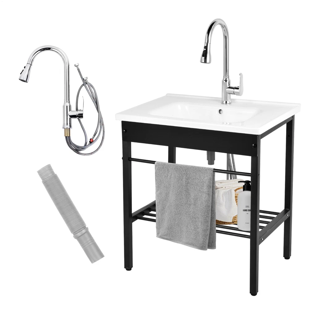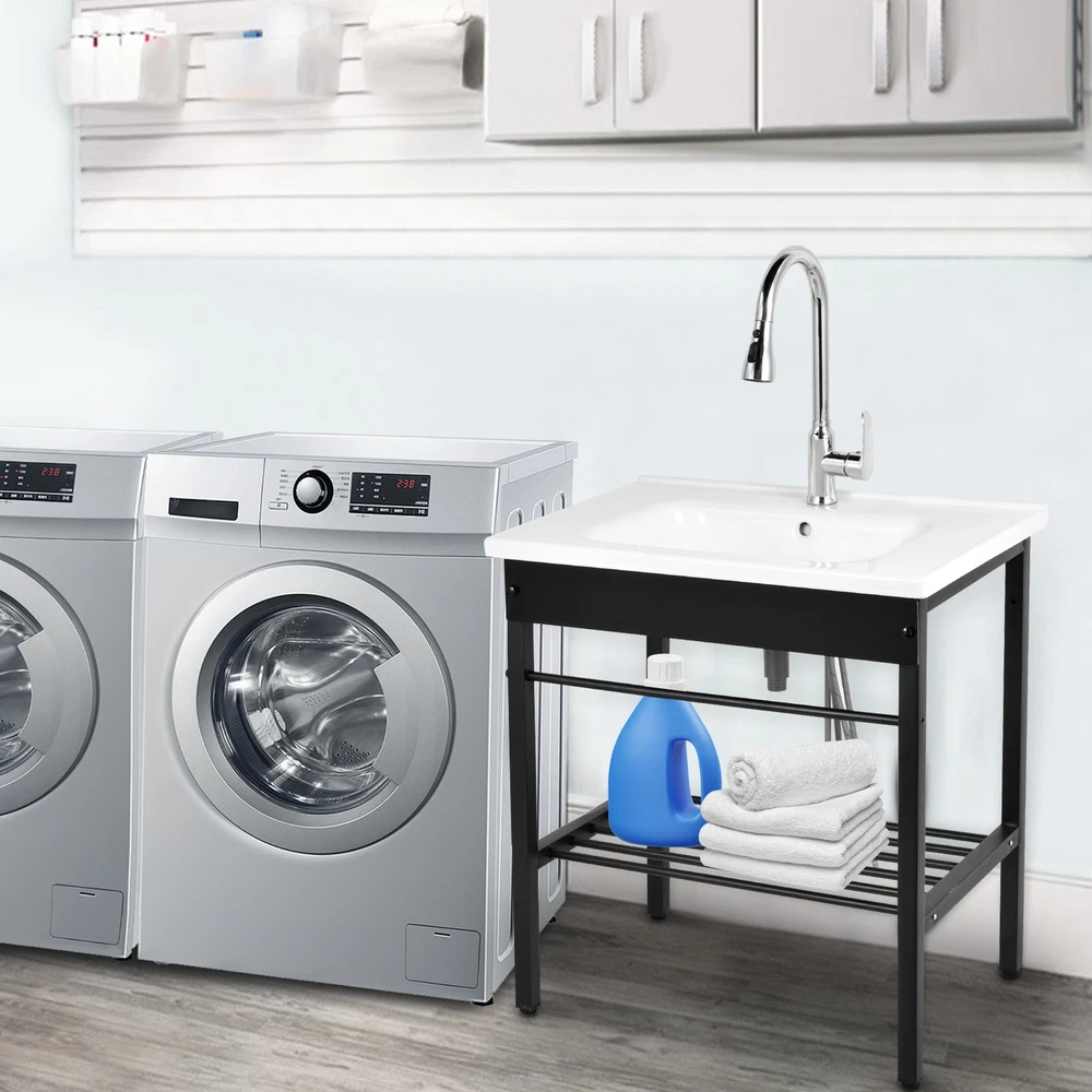 Store category Sign Up Now ! You may also like Product Description Bullet Points: Effortless Maintenance: The pull-out design of the ceramic laundry sink set brings convenience and efficiency to your daily laundry routines while offering a stylish touch Effortless Water Temperature Regulation: Featuring an all-copper faucet and hot/cold water hoses, this sink enhances your cleaning routine with effortless water temperature control, delivering a more enjoyable and convenient flushing experience Ideal Durability: Featuring high-quality ceramic sink and stylish copper faucets supported by sturdy stainless steel brackets, ensuring enduring beauty and functionality Easy Storage Solution: The spacious console area, along with smartly designed storage and towel racks, creates a well-organized and beautiful laundry space. Keep your bathroom supplies tidy Easy Mounting: Just prepare a small amount of glue, and, for a flexible installation that's easy and convenient, you can easily install by yourself; no additional accessories are required Introducing a unique design utility sink with faucet for a more convenient flushing experience! Featuring sturdy stainless steel brackets for stability, keep your laundry space tidy and beautiful. Just a small amount of glue needed for easy installation. Specifications: Product Name: Laundry Utility Sink Wash basin sizes: A: Height: 81cm 32in Length: 71.5cm 28.15in Width: 48cm 18.9in Height from ground: 24cm 9.5in Distance between legs: 44.6cm 17.56in Basin sink length: 47cm 18.5in Basin sink width: 30cm 11.8in Basin sink depth: 14.5cm 5.7in B: Height: 81cm 32in Length: 71.5cm 28.15in Width: 48cm 18.9in Height from ground: 24cm 9.5in Distance between legs: 44.6cm 17.56in Basin sink length: 40cm 15.75in Basin sink width: 30cm 11.81in Basin sink depth: 16cm 6.3in Wash board length: 30cm 11.8in Washing board width: 20cm 7.9in Hot and cold copper faucet size: Height: 58cm 22.83in Telescopic hose length: 80cm 31.8in Packing List: Wash basinx1 Stainless steel bracketx2 Rack rodx7 Drain pipex1 Faucetx1 Faucet gasketx2 Faucet counterweightx1 Bracket bottom leg gasketx4 Bracket top PP coverx4 Expansion boltx2 Long screwx2 Short screwx8 Screw decorative coverx10 Decorative plate in front of sinkx1 Payment Delivery details Terms of sales About us Feedback & DSRs Payment Before you palce an order, please kindly make sure that you have a paypal account. We accept PAYPAL payment only. Payment should be completed within 2 days after auction closed, or unpaid dispute will be filed for an closing auction. An unpaid case will be filled after 4 days. Delivery details We ship to your eBay address. Each package will be shipped to US by UPS Regular Parcel with tracking number. Please check your shipping address carefully before checkout, it can't be changed if order completed. All items will be shipped within 1-2 business day upon receipt of payment.Orders placed on weekend will be shipped within 3 days. If you do not receive your item in 7-10 business days.please contact us immediately for further assistance. We will be responsible for any damages or losses incurred in the shipping process. About us We maintain high standards of excellence FIVE STAR and strive for 100% customer satisfaction! Positive Feedback is very important to us. We hope that you contact us immediately Before you give us neutral or negative feedback, so that we can satisfactorily address your concerns. We promise to offer the lowest price and high quality produce. Our working time: From Monday to Friday(9:30 am to 18:00pm), we don't working on holidays ,hope you can understand and know that , thank you. Please always talk to us via ebay Message. We appreciate your business and look forward to growing our e-Bay sales with satisfied customers. Feedback Contact us If you have any questions, please feel free to contact with us by ebay Message during our business hours ( 9:30a.m. to 5:30 p.m.), or email us through eBay, we will try our best to help you to resolve it. For any presale or after-sale questions,please do feel free to email us! Due to the time difference, each email will be replied within 1 working day,and weekend will be delayed a bit. Feedback
