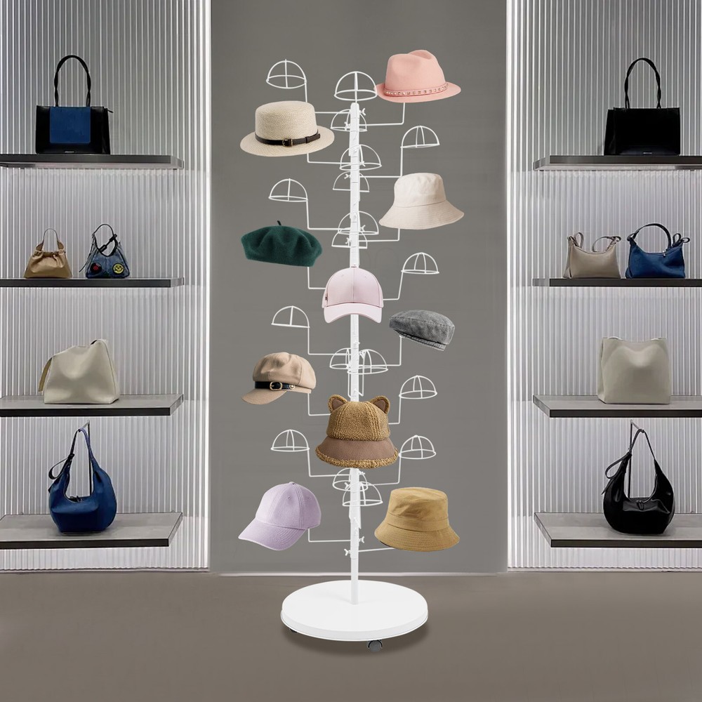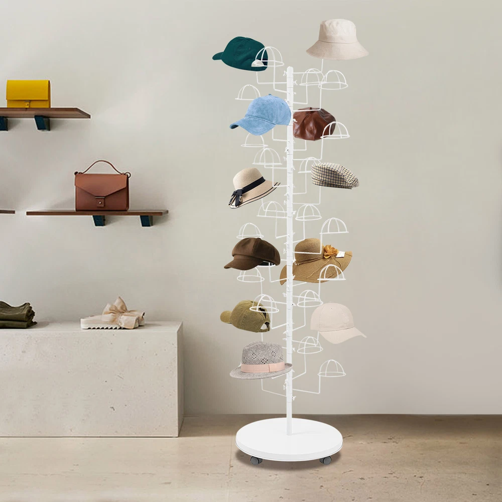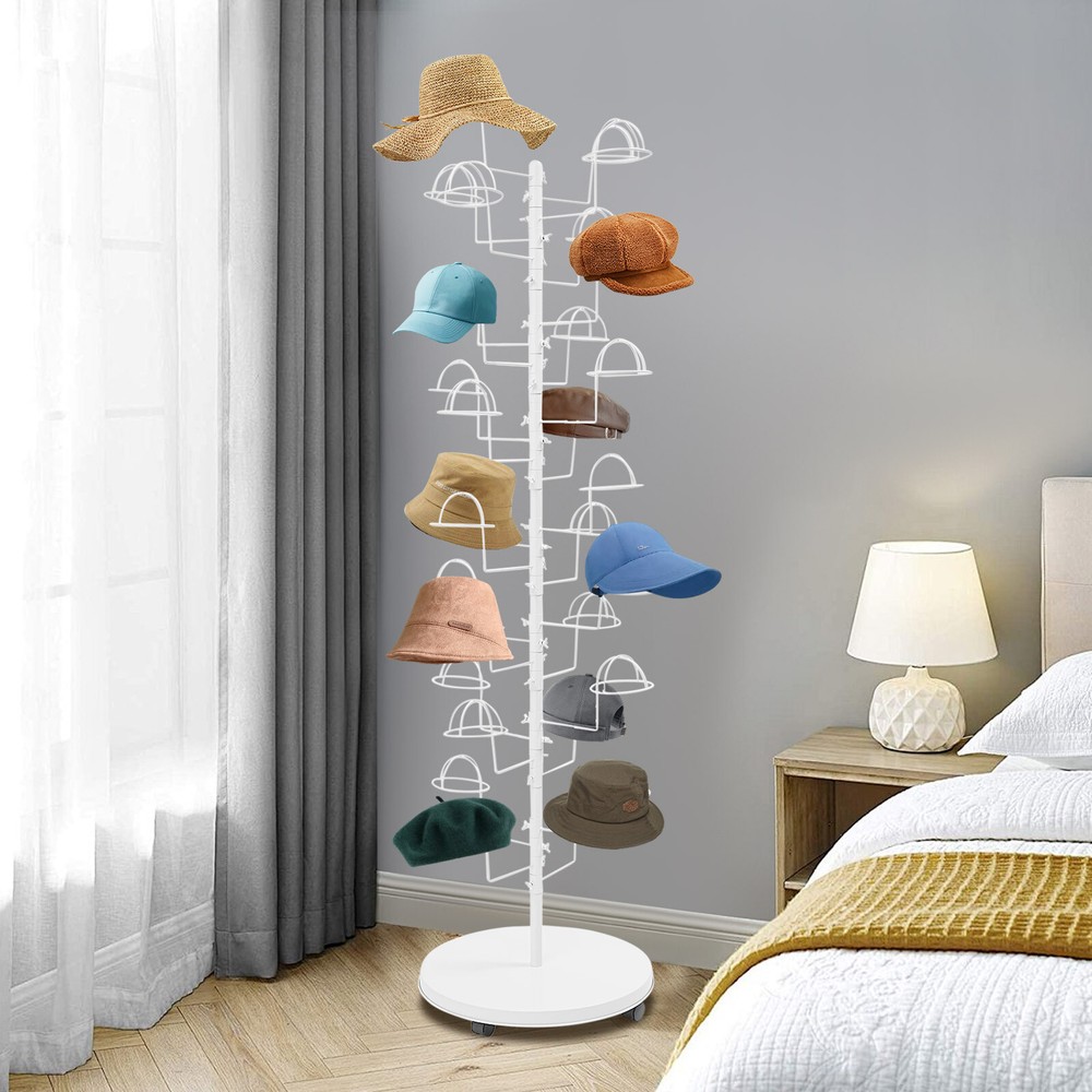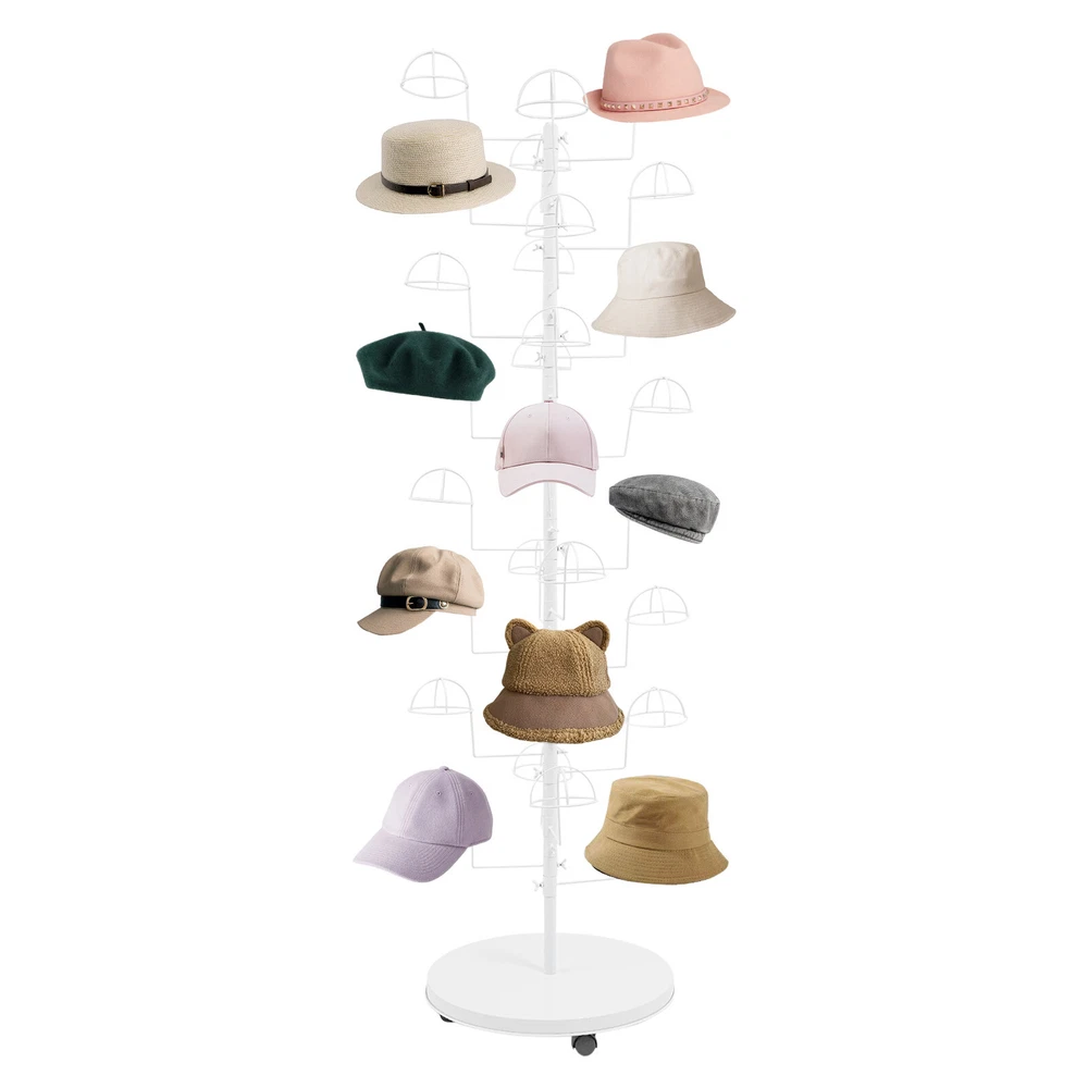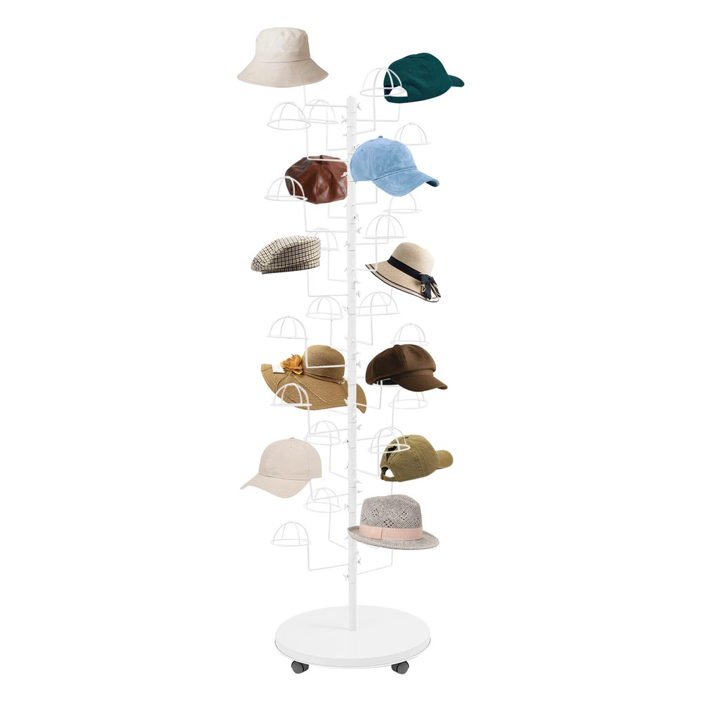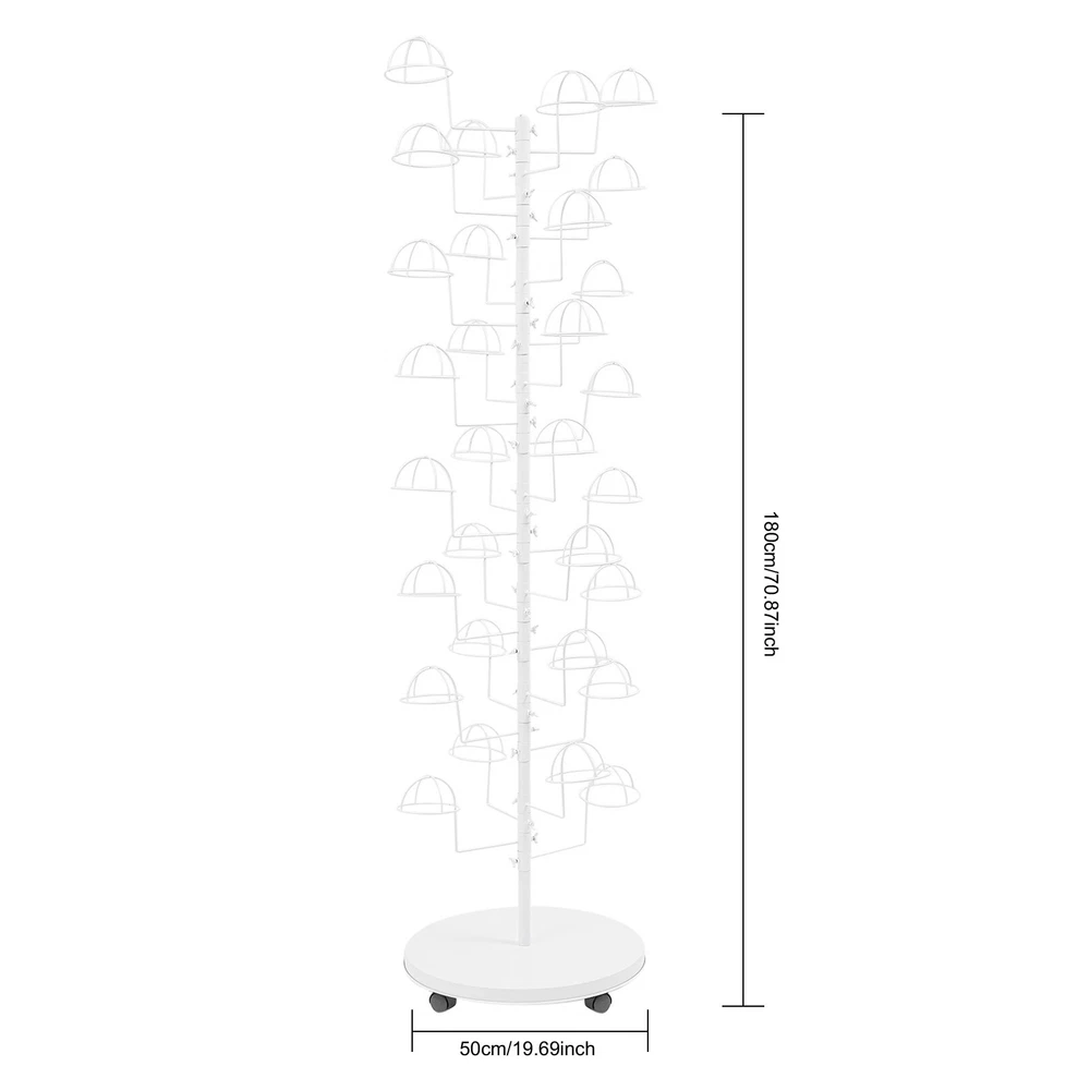 Freestanding Hats Rack Stand Metal Hats Display Stand with 30 Circular Hooks Description This hat rack is designed specifically for hat displaying, aiming to provide an efficient and tidy storage solution. The combination of premium material and exquisite craftsmanship ensures its durability. The 30-hook design and strong load-bearing capacity meet your various hat storage needs, and the 4 universal wheels facilitate the movement of this product. With its exceptional practicality and aesthetic appeal, it will be an indispensable part of your home or store. Key Features Build to Last: High-class carbon steel with exquisite high-temperature spray coating and baking paint processes makes this product sturdy, scratch-resistant, wear-resistant , rust-resistant , and not easy to corrode and deform, ensuring a long service life. Large Capacity: 30 hanging positions provide you with sufficient space to display multiple hats simultaneously, fully meeting your display needs. User-friendly: The vertical design allows hooks located at different heights to display hats suitable for different people in different positions, satisfying adults’ and children's pursuit of fashion. At home, it can also cater well to the hat storage needs of members of different heights. Flexible Movement & Fixation: Four universal wheels make it easy for you to move the product to the desired place, and the design with brakes can effectively secure the product and prevent accidental sliding. Space Saving: It fully utilizes vertical space and has a small footprint (diameter 19.69in), so you can place it in corners and other areas without taking up too much space. Easy Assembly: The simple structure, complete accessories, and detailed assembly diagram help you finish the installation quickly and use it in a short time. Labor-saving Cleaning: It has a smooth surface and an open structure, so you only need to wipe the dust or stains with a towel. Ideal Gift: With good performance and a great appearance, you can give it as an ideal gift to your family or friends, providing them with space to store various hats. Details Rounded Corners: They can care for your skin and avoid scratching during use. Circular Hooks: They keep the hats and in good shape without scratches. Application This product is suitable for bedrooms, living rooms, laundry rooms, cloakrooms, shopping centers, offices, hat/clothing stores, entryways, and other areas for hanging various hats. Specification Color: White Style: Modern Material: Carbon Steel Process: High-temperature Spray Coating and Baking Paint Assembly Required: Yes Mounting Type: Free Standing Number of Hooks: 30 Each Hook Load Capacity: 0.45kg/1 lbs Product Size(D*H): 50*180cm/19.69*70.87in Package Size: 55*55*30cm/21.65*21.65*11.81in Gross Weight: 6.7kg/14.77 lbs Net Weight: 6.37kg/14.04 lbs Package Included 1* Hat Rack 4* Universal Wheels 1* English Diagram Other Accessories for Assembly Notes Please assemble this product according to the installation diagram. Please note that this product does not include hats. Please allow the slight color difference caused by the shooting light and 1-3cm error due to manual measurement, and make sure you do not mind before ordering. Payment Delivery details Terms of sales About us Contact us Payment We accept ebay payment 。 Fees such as import duties, taxes are not included in the item price or shipping costs. These charges are the buyer's responsibility. Delivery details Shipping: 2-9 working days to: USA Terms of sales We maintain high standards of excellence and strive for hundred percent customer satisfaction. Feedback is very important to us. We hope that you contact us immediately before you give neutral or negative feedback, so that we can address your concerns. It is impossible to address issues if we do not know about them! About us Your satis faction is our ultimate goal. We work hard to earn your trust and future business. Our certified technicians have tested each item before shipping. The unit comes with 1 year limited warranty on all manufacturing defects. a) If you receive a defective item, you may return it or ask for a discount. Please contact us within 14 days after you receive the package. b) What you returned must be intact and in its original packaging as re? u. Customer is responsible for shipping costs of the returned item. c) We will cover the cost of shipping back t with the shipping rate indicated in the registration page. We will send you a new unit or refund the full payment you paid. Thank you. Contact us Business Hour Business Hour: Monday To Friday: 8:30 AM to 5:00 PM (Beijing China time) Due to time zones, our reply to your questions may not be immediately. But within above working time, we will reply your email within 24 hours. If it's non-workdays, please kindly be patient and wait till Monday. Please contact us with ebay message. Please feel free to contact us if you have any questions. Monday To Friday: 8:30 AM to 5:00 PM (Beijing China time) Due to time zones, our reply to your questions may not be immediately. But within above working time, we will reply your email within 24 hours. If it's non-workdays, please kindly be patient and wait till Monday. Please contact us with ebay message. Please feel free to contact us if you have any questions. Brand Unbranded Type Coat & Hat Racks