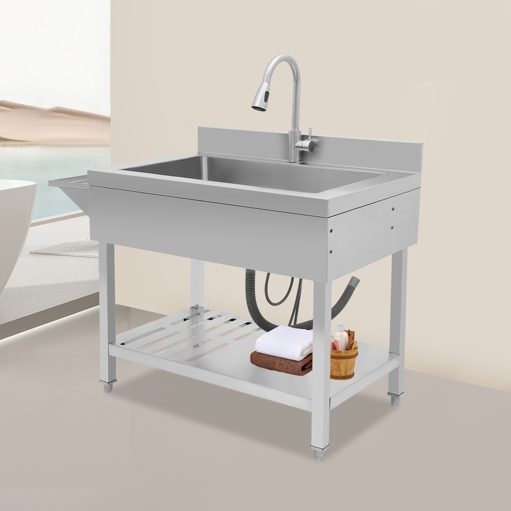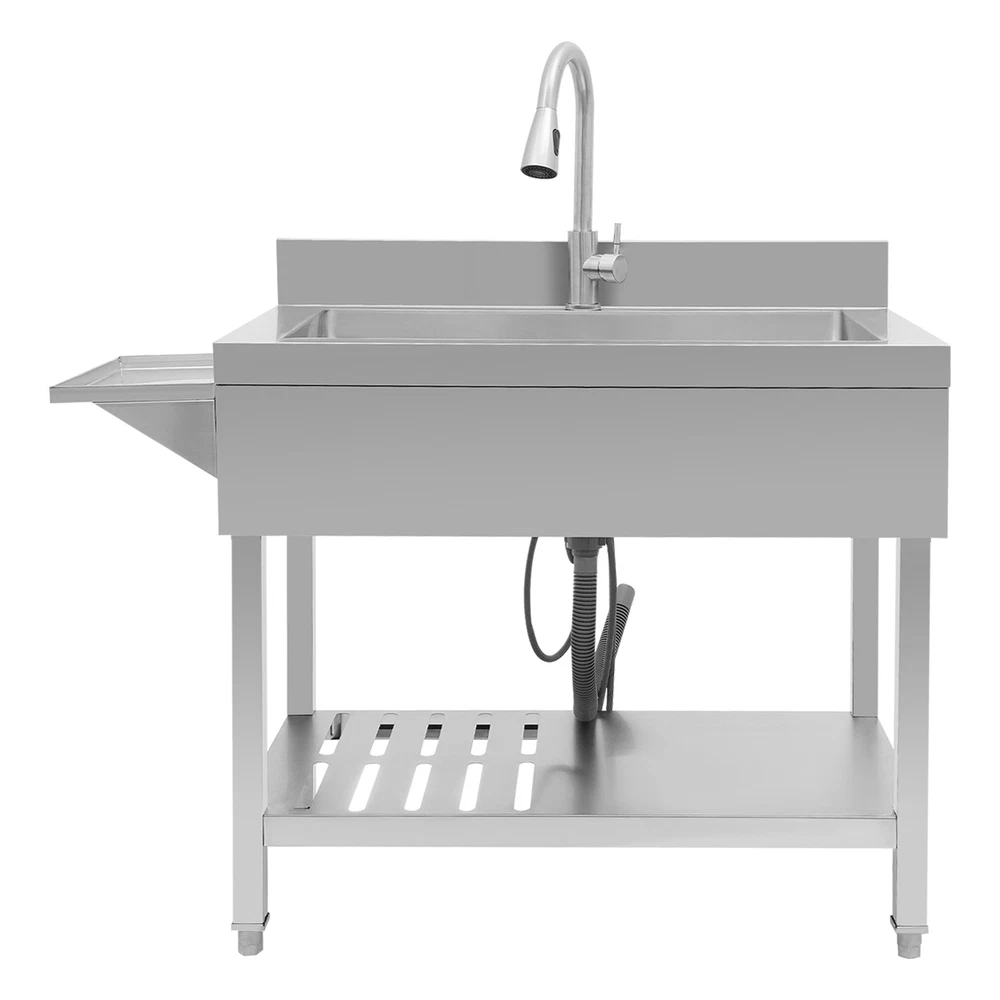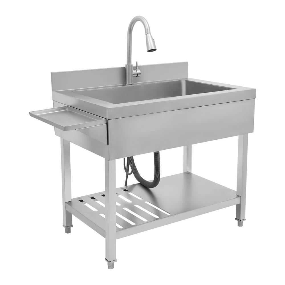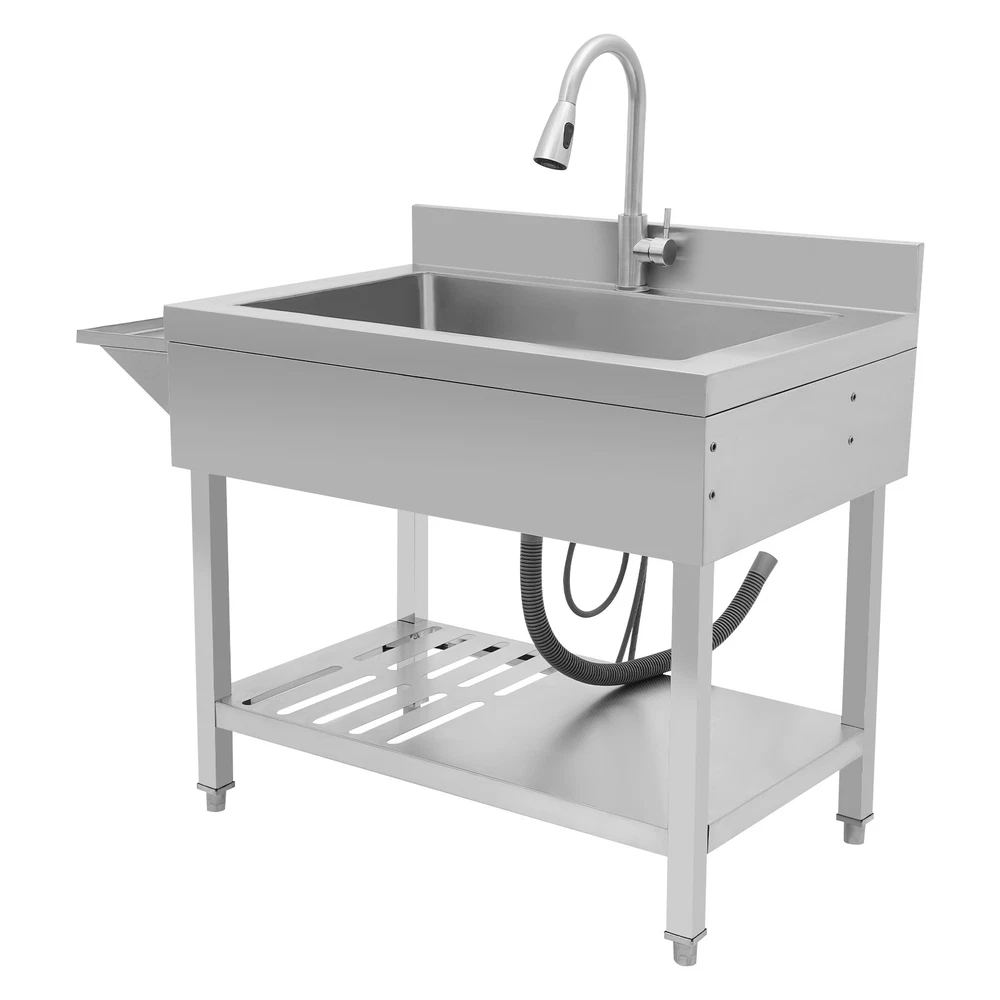 This freestanding sink unit is a game-changer! The stainless steel build feels sturdy, and the pull-out faucet makes cleaning a breeze. Love the adjustable feet for uneven floors—super practical. Spacious sink with great load capacity, and assembly was straightforward. Perfect blend of style and functionality for any kitchen!