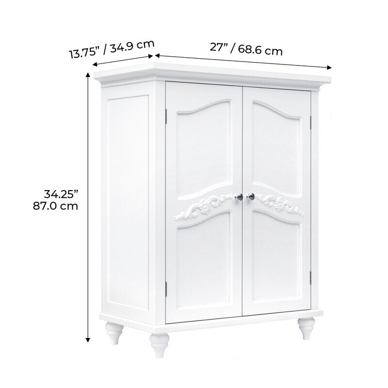 You may also like Freestanding Cabinet W/ Glass Doors Adjustable Shelves Double Door Storage New 121.73 USD 128.14 USD Free shipping 5% off Freestanding Accent Cabinet Two-Door Floor Storage W/ Adjustable Shelf & Drawer 238.39 USD 250.94 USD Free shipping 5% off TV Stand Cabinet Adjustable Shelf Open Storage Entertainment Console Living Room 293.31 USD 308.75 USD Free shipping 5% off Modern Buffet Sideboard Storage Cabinet 4 Door MDF Wooden Console Table New 139.89 USD 147.25 USD Free shipping 5% off 2 Door Storage Cabinet Adjustable Shelves Cord Access Farmhouse Organizer New 193.18 USD 203.35 USD Free shipping 5% off Modular 2-Door Storage Cabinet Office Organizer Easy Assembly Magnetic Hinges US 42.56 USD 44.8 USD Free shipping 5% off Slim Bathroom Floor Cabinet Freestanding Storage Adjustable Shelves Space Saver 102.5 USD 107.89 USD Free shipping 5% off Modern Oak Brown Wooden 2-Door Storage Cabinet W/ Metal Handles Indoor Organizer 138.65 USD 145.95 USD Free shipping 5% off Floor 3 Shelves Standing 2 Door Cabinet Storage Organizers Entryway Dining Room 45.07 USD 47.44 USD Free shipping 5% off Adjustable Base Cabinet Sturdy Storage Organizer Livingroom Indoor Bedroom Decor 196.02 USD 206.34 USD Free shipping 5% off 4 Cubby Storage Cabinet Cube Organizer Home Office Living Room Brown Espresso US 64.03 USD 67.4 USD Free shipping 5% off 4-Door Free Standing Home Kitchen Floor Cabinet Storage Cupboard Kitchen Pantry 153.24 USD 161.31 USD Free shipping 5% off 's Versailles Freestanding Floor Cabinet is a versatile addition to your home. This decorative cabinet features a dark espresso finish with a crown molded top, metal knobs, and engraved doors for a timeless addition to your space. A pair of adjustable shelves make this cabinet functional and customizable to suit your storage needs. Constructed from dependable engineered wood, this storage unit is built to provide you with long-lasting organization. Available in white or dark espresso. White finish with a crown molded top, metal knobs, and engraved doors for a timeless addition to your space Two adjustable inner shelves for easy storage of tall objects Constructed from durable engineered wood, less likely to warp, crack, or rot Easy step-by-step instructions and all of the hardware needed for installation included Dimensions: 27. 01" L x 13. 74" W x 34. 02" H You may also like Apex Punch Mitts Training Pads Boxing Endurance Technique Durable Synthetic New 70.66 USD 74.38 USD Free shipping 5% off Unisex Expandable Recycled Backpack Tech Sleeve Hydration Pockets Travel Bag New 39.07 USD 41.13 USD Free shipping 5% off Clear Acrylic Floating Shelves Wall Mounted Home Storage Organizer 2pk New 29.08 USD 30.61 USD Free shipping 5% off Multi-Level Cat Tree Plush Condo Scratching Posts Hammock Toy Padded Platforms 136.29 USD 143.46 USD Free shipping 5% off Portable Ice Maker 26lb Countertop Ice Machine Bullet Ice Electric W/ Ice Scoop 84.79 USD 89.25 USD Free shipping 5% off Stackable Plastic Storage Bins W/ Lids 68Qt 6Pack Home Office Organization New 64.77 USD 68.18 USD Free shipping 5% off 53 Piece Crappie Tackle Kit Fishing Gear Utility Box Hooks Sinkers Floats Pliers 16.78 USD 17.66 USD Free shipping 5% off Door-Mounted Pantry Organizer Adjustable Storage Rack Spice Holder Kitchen New 29.31 USD 30.85 USD Free shipping 5% off Double Rod Clothes Rack W/ Casters Chrome Wire Garment Storage Organizer Mobile 88.91 USD 93.59 USD Free shipping 5% off 3 lbs 4oz Buttermilk Pancake Mix Emergency Food Supply Survival Prepper Storage 15.6 USD 16.42 USD Free shipping 5% off 7 Pack Durable Plastic Clothes Hangers Shirts Coats Sweaters Organizing New 12.49 USD 13.15 USD Free shipping 5% off 7 Inch Black Table Torch Lantern Clean Burn Fuel Outdoor Lighting Repellent New 24.42 USD 25.71 USD Free shipping 5% off
