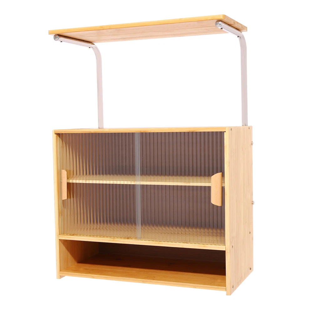 2-Tier Bamboo Countertop Cabinet with Large Storage Space Made in USA