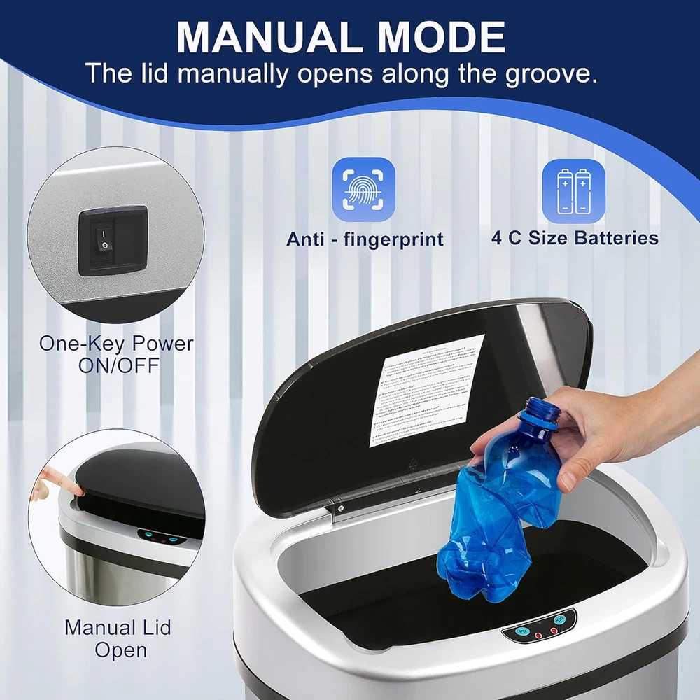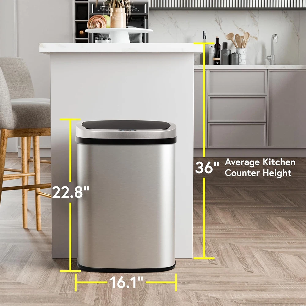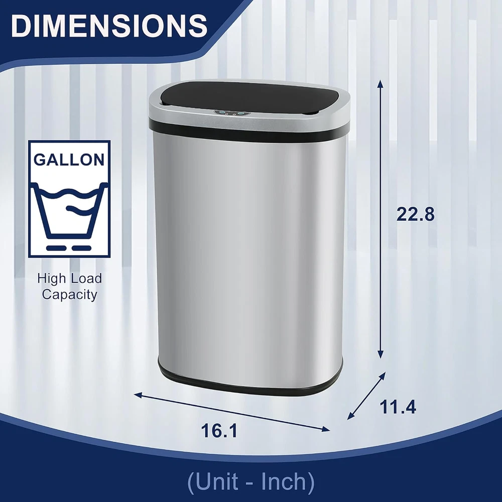 Store New Arrivals Add to Favorite View Feedback Contact Freeway 13 Gallon Metal Household Trash Can Motion Sensor Lid for Kitchen, Silver Description Item model number SH226B-3223TW Room Type Bathroom, Kitchen, Living Room, Bedroom, Classroom, Home Office, Dining Room Capacity 13 Gallons Color Silver Special Feature Removable Lid, Motion Sensor Product Dimensions 16.1 x 11.4 x 22.8 inches; 9 Pounds Material Stainless Steel Country of Origin China Shape Round Opening Mechanism Motion-Sensor Recommended Uses For Product Indoor Finish Type Brushed ๐๏ธ LARGE CAPACITY: With a spacious 13-gallon (50L) capacity, our garbage can handles daily waste efficiently. The handle at the back ensures easy mobility whenever necessary. ๐ ๏ธ STAINLESS STEEL DESIGN: Our sleek stainless steel trash can is a blend of durability and elegance. The anti-slip base ensures firm placement, and itโs splash-resistant for practical use. ๐ SILENT & SENSOR LID: Enjoy silent operation with our motion sensor trash can using infrared technology. A gesture opens the lid, which gently closes after 4 seconds, ensuring tranquility. ๐ EASY TO CLEAN & ODOR ISOLATION: Enjoy hassle-free cleaning with our smooth surfaced trash can. The durable, dog-proof lid locks in unpleasant odors, ideal for pet-friendly homes. ๐ ENERGY-SAVING: Designed with an on/off button for energy efficiency, conserve power easily when not in use, showcasing an eco-friendly and user-oriented approach to waste management. Sleek Exterior and Premium Material Step into a world where functionality meets sleek design with our metal trash can. This kitchen 13 gallon trash can with lid is crafted from durable brushed stainless steel, offering a modern, sophisticated look in a classic silver hue. Its dimensions of 16 inches in width and 23 inches in height provide ample space for daily waste management while fitting seamlessly into your kitchen or other spaces. The elegant metallic finish not only enhances its aesthetic appeal but also ensures a long-lasting companion to your waste disposal routine. Practical Functionality for Multiple Scenarios Our kitchen garbage can is engineered for ease of use and practicality. The dog proof trash can feature is perfect for pet-friendly households, ensuring a hassle-free experience. Powered by four C batteries, enjoy an extended usage period of over two years without the need for a . The ease of spot cleaning or wiping clean makes maintenance a breeze, saving you time and effort. Whether placed in a bustling kitchen, a modern living room, or a commercial space, its versatile design caters to various waste disposal needs efficiently. Smart Features for an Effortless Lifestyle Immerse in a hassle-free waste disposal experience with our smart trash can. The automatic trash can functionality, empowered by motion sensors, promotes a hygienic and effortless way of managing waste. With a gentle wave, discard your waste, and let the lid close silently, ensuring a tranquil environment. This feature-rich trash can is not merely a utility item but a modern addition that simplifies your daily routine while enhancing the aesthetics of your space. Invest in our 13 gallon trash can with lid and embrace a blend of modernity, elegance, and practicality in your waste management. ABOUT US We offer the best prices around on high quality products. Our E-store includes media such as books, movies, music and games while offering electronics, toys, sporting apparel, clothing, tools, general home, garden items and more. SHIPPING We are always working hard to ensure your package arrives as soon as possible. Please understand that some factors like weather, high postal traffic, and the performance of shipping companies are outside of our control. We offer free shipping to the lower 48 states and ship within 2 business days of payment, usually sooner. We do not accept P.O. Boxes. Please provide a physical address. For shipping outside of the continental USA, we only use eBay's Global Shipping Program.The item is shipped to KY and then sent to the rest of the world. International customers are responsible for all duties and taxes. Continue to check out in order to calculate costs for shipping the item to your country. Messages regarding eBay's Global Shipping Program MUST be directed at eBay EXCLUSIVELY. RETURNS We offer a 30-Day Return Policy on items which you are not completely satisfied with. You have the option for a full-refund or an exchange of the item. No returns are available on items shipped outside of the USA. PAYMENT We accept PayPal. CONTACT US This page content is yet to come Please ad us to your favorite seller and visit again later Thank You CUSTOMER SATISFACTION We try our very best to make sure every customer is completely satisfied. If there's a problem, message us! We're happy to help. WE ACCEPT Copyright ยฉ 2021 AutoDS. | All Rights Reserved