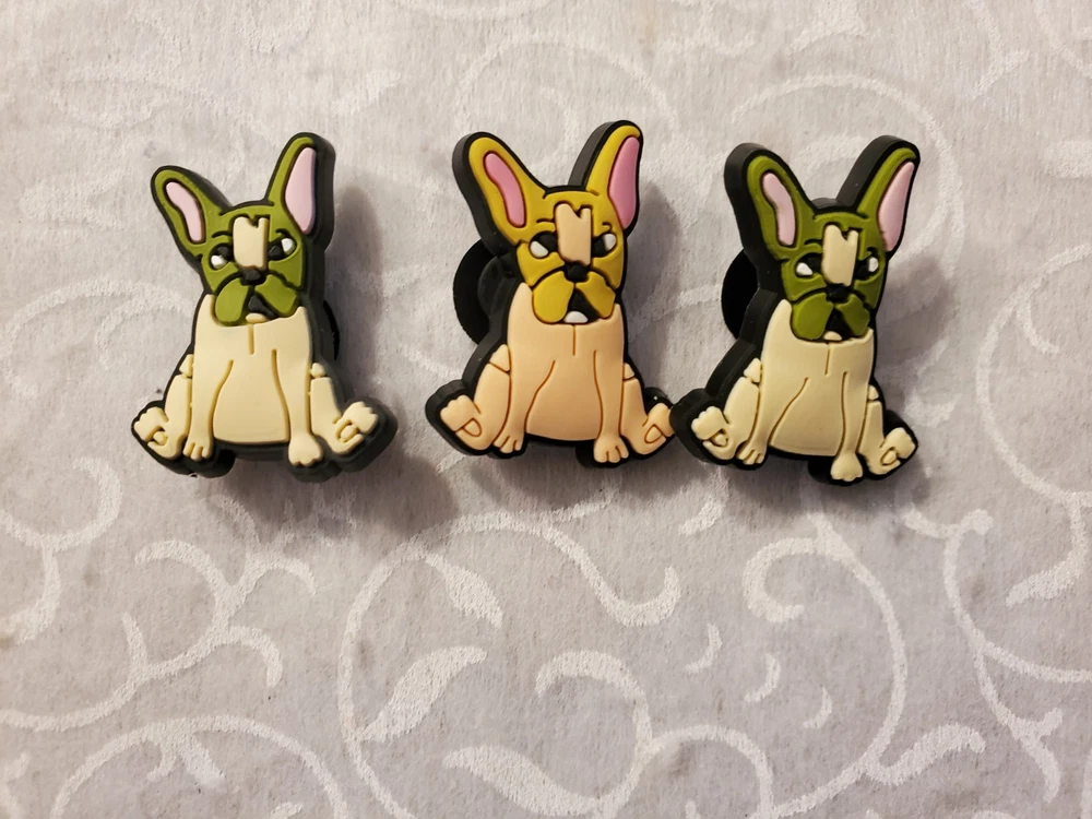 Brand NEW. Never used or worn. The product is a lot of 3 French Bulldog shoe charms, featuring a brown color and a theme of dogs and puppies. Please see pics for item condition. Pics are not meant to be a complete representation of item wear or defect.
