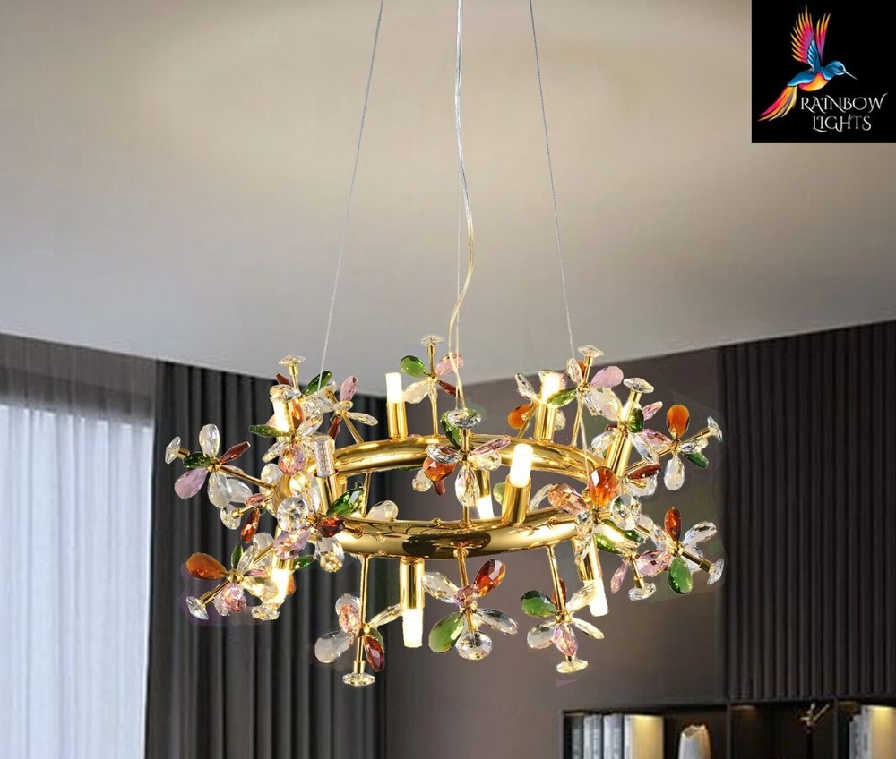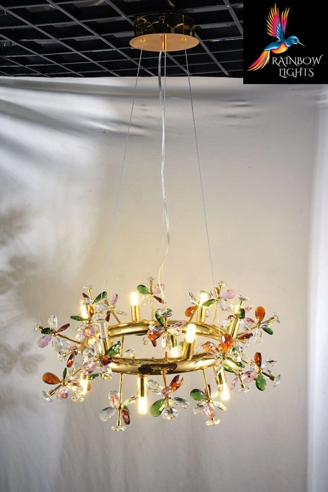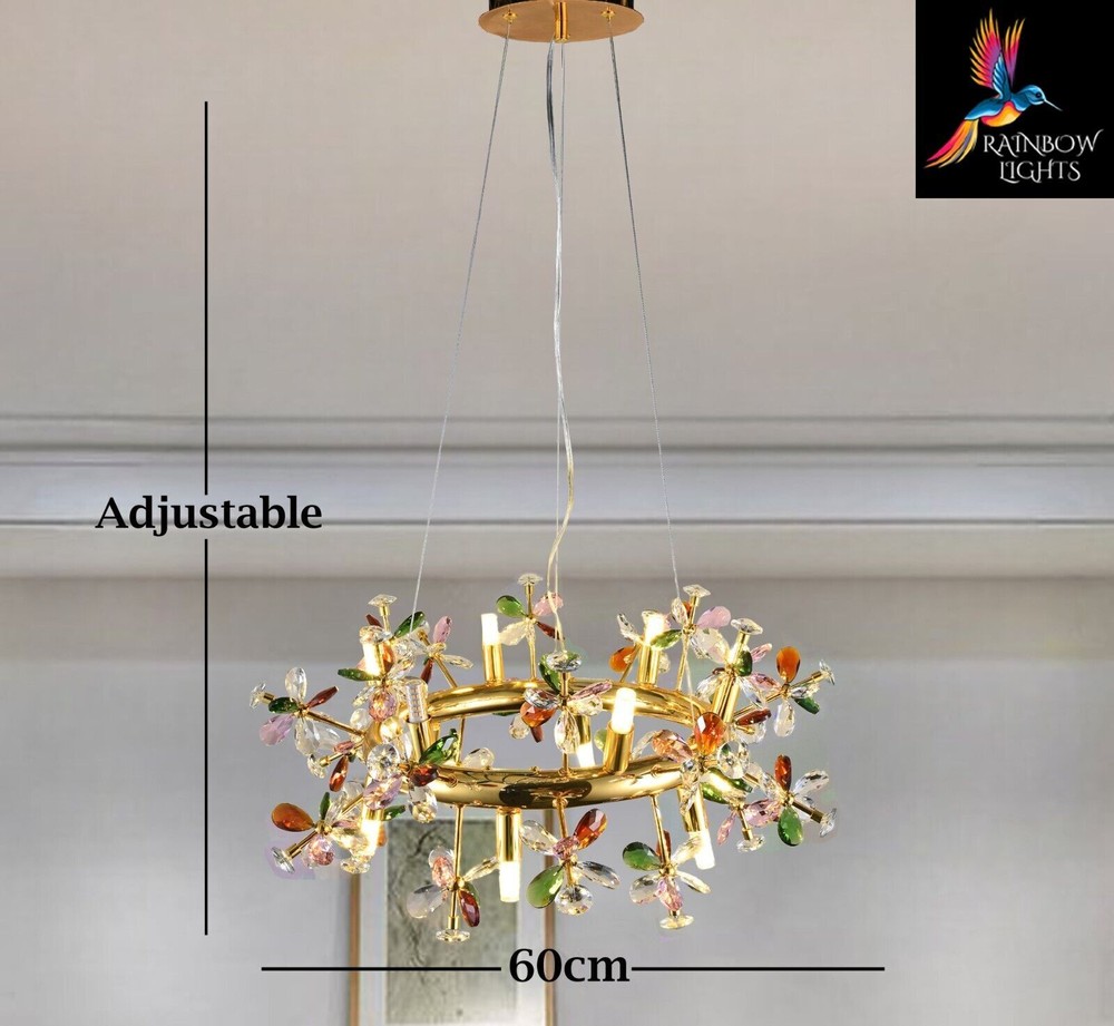 NEW! Starburst Round Shaped Colorful Crystal Petals Sputnik Style Chandelier, Add a touch to your home with these brand-new luxury lights from Rainbow Lights. Product Details: Condition NEW Material Glass + Crystal + metal Width/Diameter 60 cm Height Adjustable Product Type Starburst sputnik Light Style Contemporary Shape Round Number Of Bulbs 12 Bulb Type G9 Lamp Wattage 60 Voltage AC110-240V - 50/60Hz Lumens 80-100 CCT 3000K(Warm White) Light Source LED Shade Clear Specific Uses Indoor Weight 5.4 kg Modern Chandelier, Crystal Chandelier, Light Fixtures, Hanging Lights, Farmhouse Chandelier, Antique Chandelier, Vintage Chandelier, Round Chandelier, Ceiling Lights, Luxury Chandelier, Pendant Light, Modern Lights, glass chandelier, Sputnik Lights. Crystal Chandelier Lighting - Crystal Pendant Lighting - Kitchen island Hanging Light - Dining room Pendant Light - Foyer Chandelier lighting - Bedroom Pendant light Listing and template services provided by inkFrog