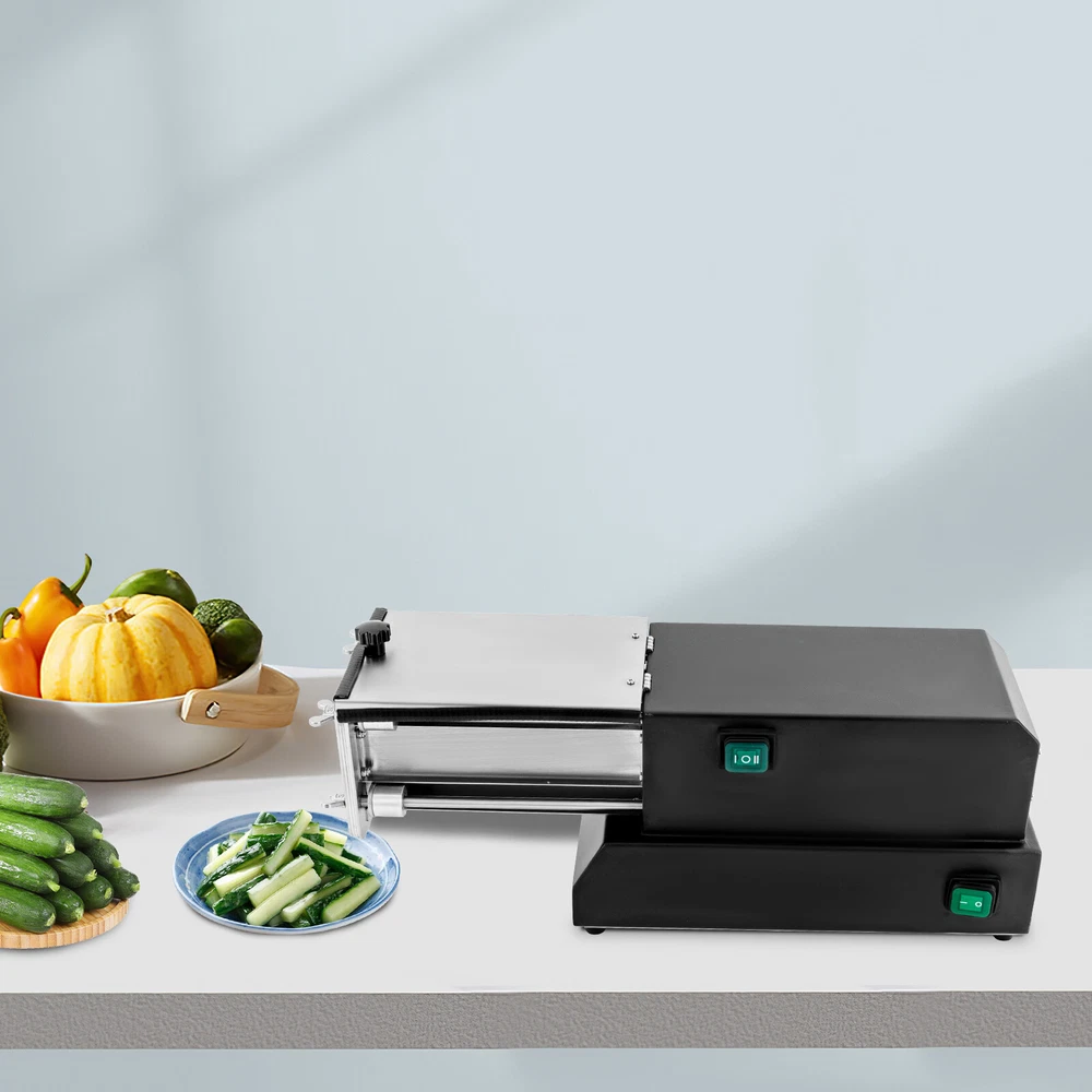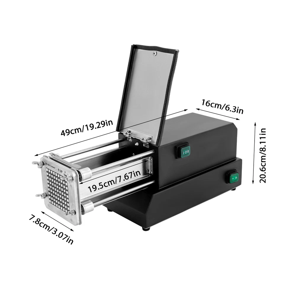Description Are you worried about your poor knife work, cutting out the uneven thickness of foods, or still worried about manual cutting vegetables laborious and easy to hurt your hands? Then we strongly recommend buying our electric potato cutter to meet your cutting needs and give you efficient and convenient cooking services! Key Features High-quality Material: The entire body, including the blade, is made of stainless steel, which is not only safe and hygienic but has good wear resistance, durability, is not easily deformed, and has a long service life. Good Assistant: The 200W power and 3.32in/s pusher speed enable you to easily cut raw materials into strips or dicings, which will save you time and allow you to enjoy time with friends and family. Intelligent Control: Compared to French Fry Cutter Electric Stainless Steel W/ 2 Blades For Commercial, Home Description Are you worried about your poor knife work, cutting out the uneven thickness of foods, or still worried about manual cutting vegetables laborious and easy to hurt your hands? Then we strongly recommend buying our electric potato cutter to meet your cutting needs and give you efficient and convenient cooking services! Key Features High-quality Material: The entire body, including the blade, is made of stainless steel, which is not only safe and hygienic but has good wear resistance, durability, is not easily deformed, and has a long service life. Good Assistant: The 200W power and 3.32in/s pusher speed enable you to easily cut raw materials into strips or dicings, which will save you time and allow you to enjoy time with friends and family. Intelligent Control: Compared to traditional manual control, you just need to plug in the power cord, and put in the ingredients, through one button to control forward and backward, very time-saving and labor-saving. High Safety: It has an overload protection function that automatically disconnects the machine if it is overheated or overloaded to protect the machine and improve safety in use. Large Capacity: With the capacity of 7.68*3.07*2.76 inch, this cutter is big enough to cut an entire potato, sweet potato and other vegetables, which is suitable for commercial or home use. Easy to Clean: With its smooth surface, removable blade, you can easily and quickly clean it. Only need to clean it with a damp cloth or rinse the blade with water. Spacing-saving: Because of its small size (19.29*6.3*8.11 inch), it can be placed on your kitchen table or in a closet without taking up too much space. Customer Service: We aim to provide quality products and services. If you have any problems, please feel free to contact us. We will reply and solve the problem for you as soon as possible. Details Anti-slip Feet: The bottom of the product has four anti-slip feet, which can effectively prevent it from slipping, and reduce scratches on the desktop caused by machine vibration during use. Spiral Carry Handle: The top of the lid is equipped with a spiral carry handle, which makes it easy for you to lift and close the lid. Control Buttons: You can manually control the forward and backward which is easy to use. Stainless Steel Shield: It has a stainless steel shield added to the top, which helps prevent food splashes and increases the use safety. Multi-size Blade Grids: The product is equipped with multi-size blade grids(1/2", 3/8") to meet your different cutting needs. Application It can cut not only potatoes and French fries but also white radishes, carrots, sweet potatoes, cucumbers, apples, and various other harder vegetables and fruits. And it is suitable for homes, and restaurants to use. How to Replace the Blade 1. Turn off the power. 2. Unscrew the nut counterclockwise. 3. Remove the net blade. 4. Open the lock, and replace the push plate and net blade. 5. Lock the nut back after screwing. How to Use 1. Put a big potato or small potato into the machine. 2. Cover the lid and turn on the power switch. 3. Use the control switch to control forward and backward to cut potato. 4. Fry the potato chips and start to enjoy your perfect french fries! Specification Material: 201&304 Stainless Steel, PVC Color: Black Style: Modern Minimalist Processing Range: Fruits and Vegetables Plug: US Standard Voltage: 110V Power: 200W Frequency: 50/60HZ Blade Shape: Rectangular Operation Mode: Automatic Pusher Speed: 82mm/3.32in/s Single Pusher Stroke Time: 1.95s 2 Size Grid Blades: 12mm, 1/2"; 8mm, 3/8" Vegetable and Fruit Holding Size: 19.5*7.8*7cm/7.68*3.07*2.76 inch Package Size: 56*25*25cm/22*9.8*9.8 inch Product Size: 49*16*20.6cm/19.29*6.3*8.11 inch Gross Weight: 10kg/22 lb Net Weight: 9kg/19.84 lb Package Includes 1* Electric Potato Cutter 1* Power Cord 2* Grid Blades(One is Already Installed) 1* English Manual Notes Due to the strong power of the machine, when cutting small ingredient, it'll be bent. Therefore, it is recommended to use this machine to cut large ingredients such as large potatoes, large sweet potatoes, large carrots, and so on. If the power switch is not on, it is possible that the machine's power cord is not plugged in properly. If the lid is not closed, the machine will not start either for your safety protection. The blade is sharp, pay attention to safety when cleaning, replacing, and storing! Please dry it when stored after cleaning. It is best to hand wash to avoid touching badly, the body should not be immersed in water. Please allow the slight color difference caused by the shooting light and 1-3 cm error due to manual measurement, and make sure you do not mind before ordering. Payment Delivery details Terms of sales About us Contact us Payment We accept ebay payment 。 Fees such as import duties, taxes are not included in the item price or shipping costs. These charges are the buyer's responsibility. Delivery details Shipping: 2-9 working days to: USA Terms of sales We maintain high standards of excellence and strive for hundred percent customer satisfaction. Feedback is very important t