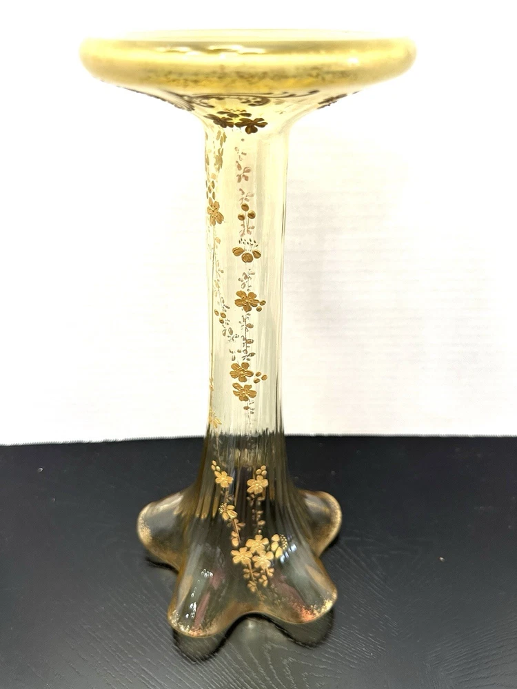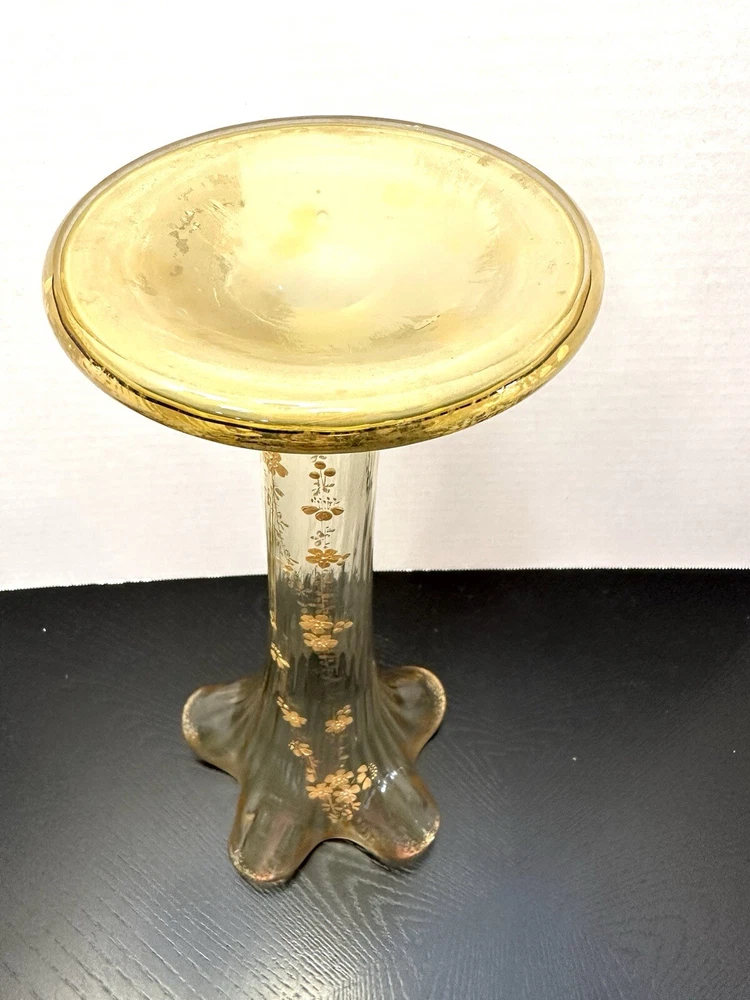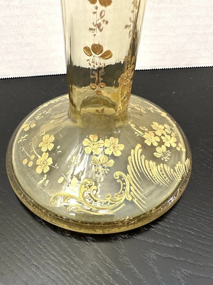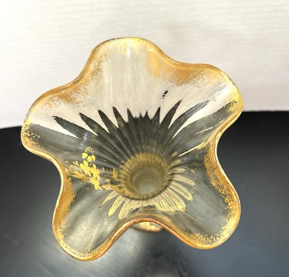 Rare Find Antique Glass Vase Gold Enamel Raised Art Ribbed With Flared Top This is a beautiful vase! This is a French Leglas vase Look at all the pictures of the art work.