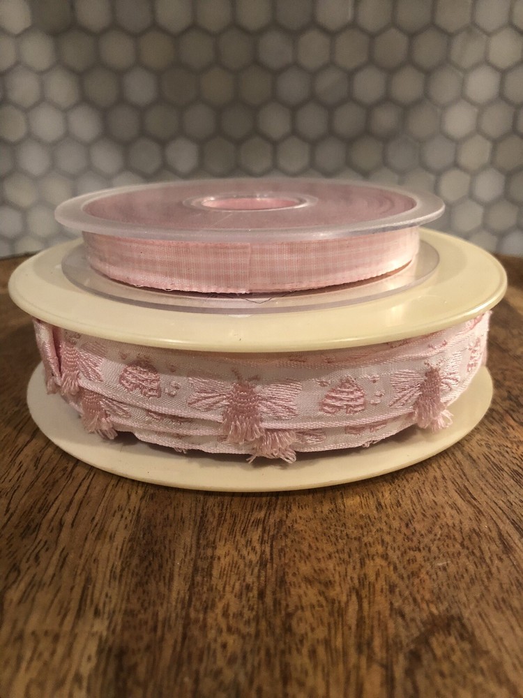 French Pink Bumblebee Ribbon 25 M. Made In France. Gingham ribbon or included.