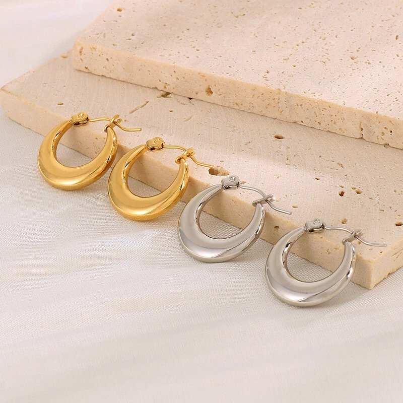 French geometry irregular C-shaped women's small titanium steel earrings jewelry