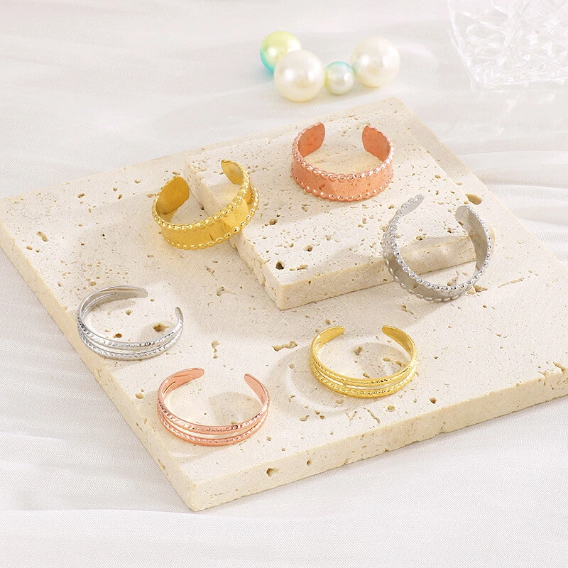 French new niche ring electroplated 18k gold titanium steel ring C open ring