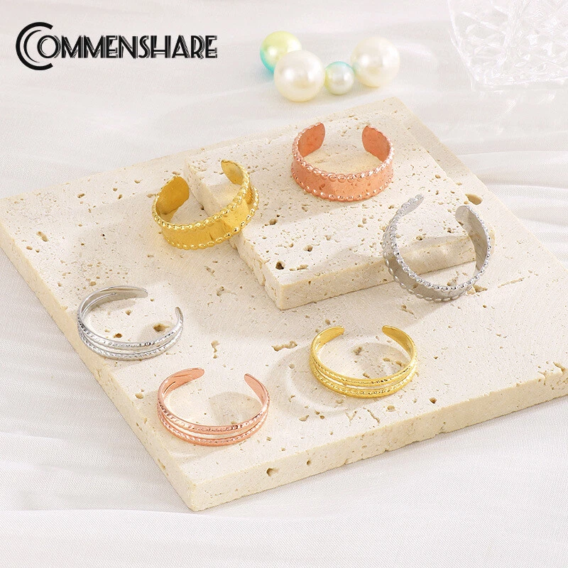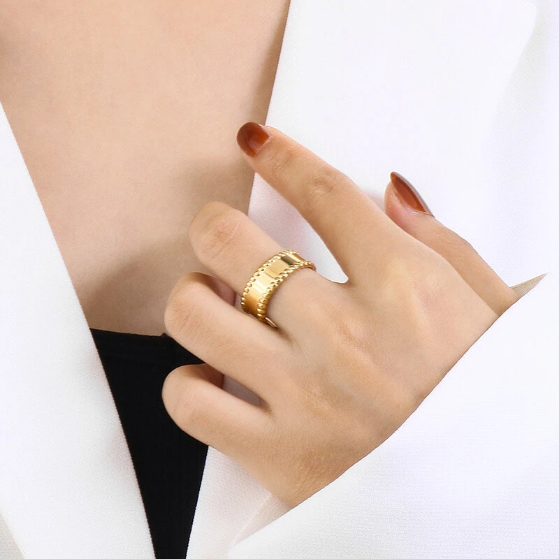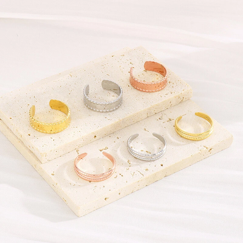 Fashion Temperament Titanium Steel Nude Bend Plate Women's Ring 3 Colors Sz 5-9