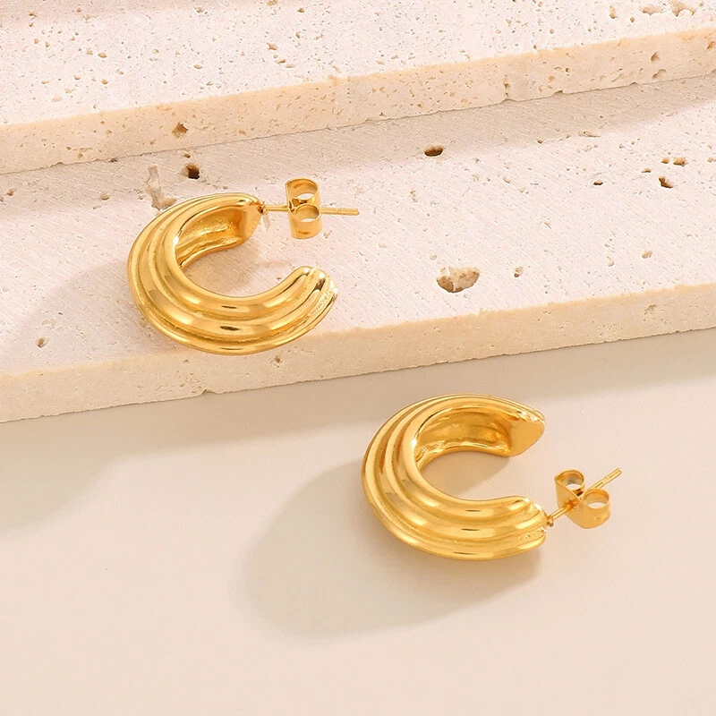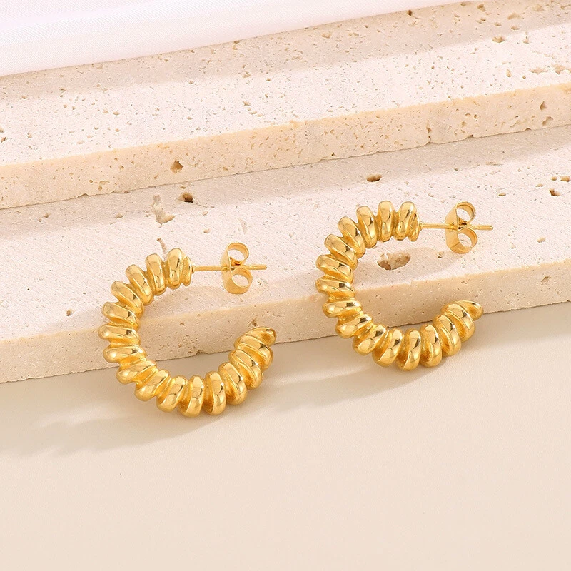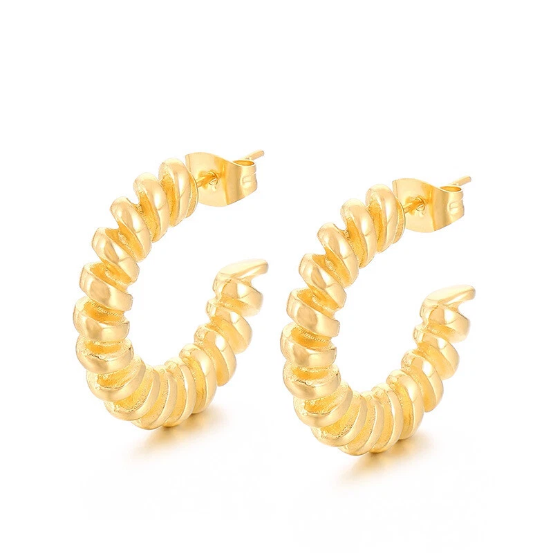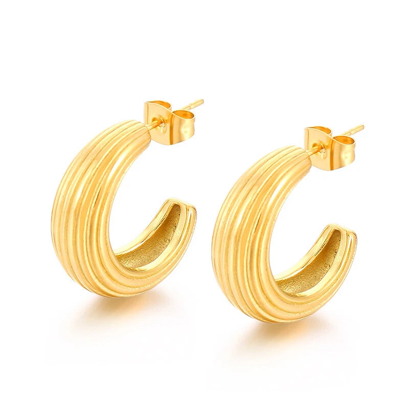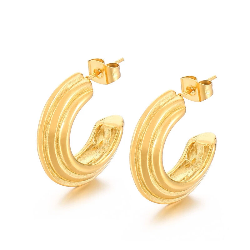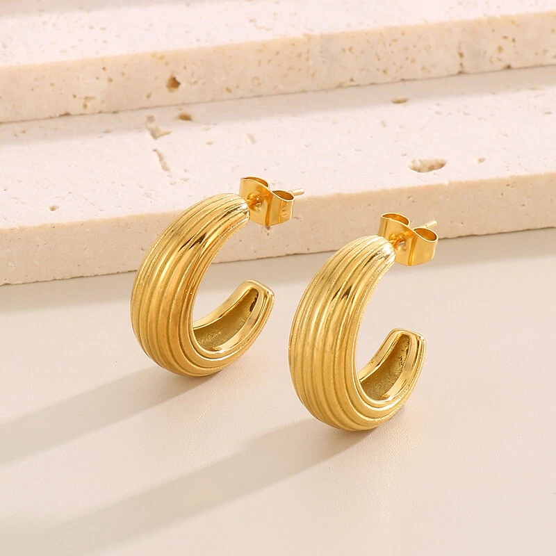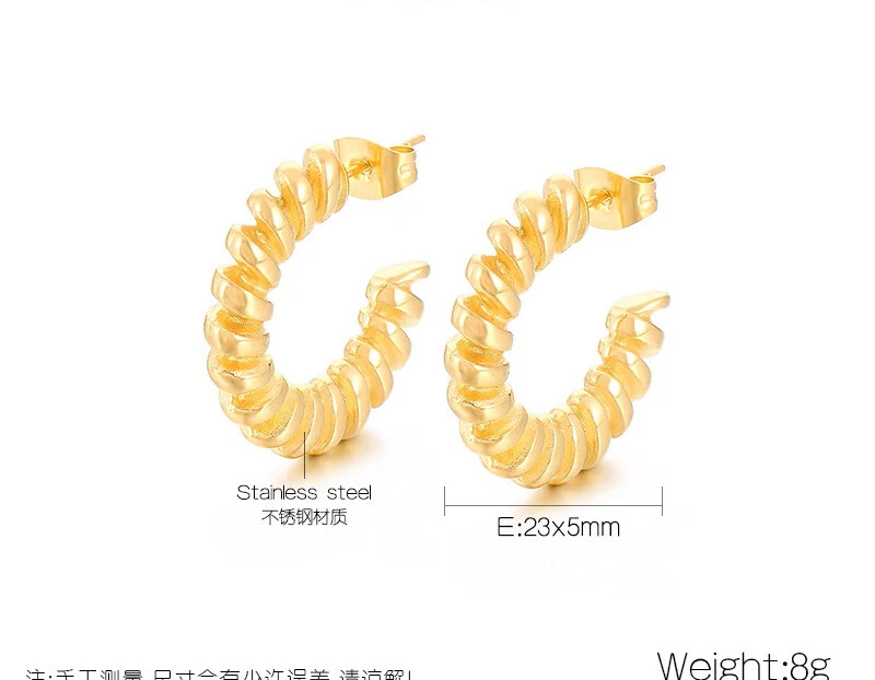 French titanium steel gold-plated earrings Vintage striped C-loop earrings