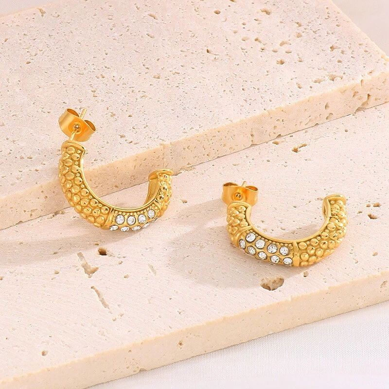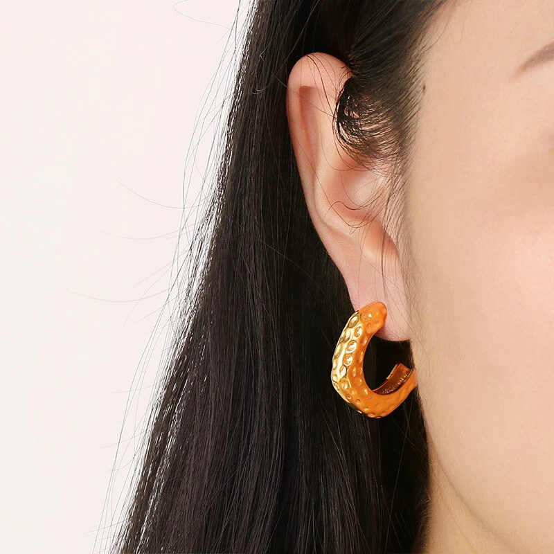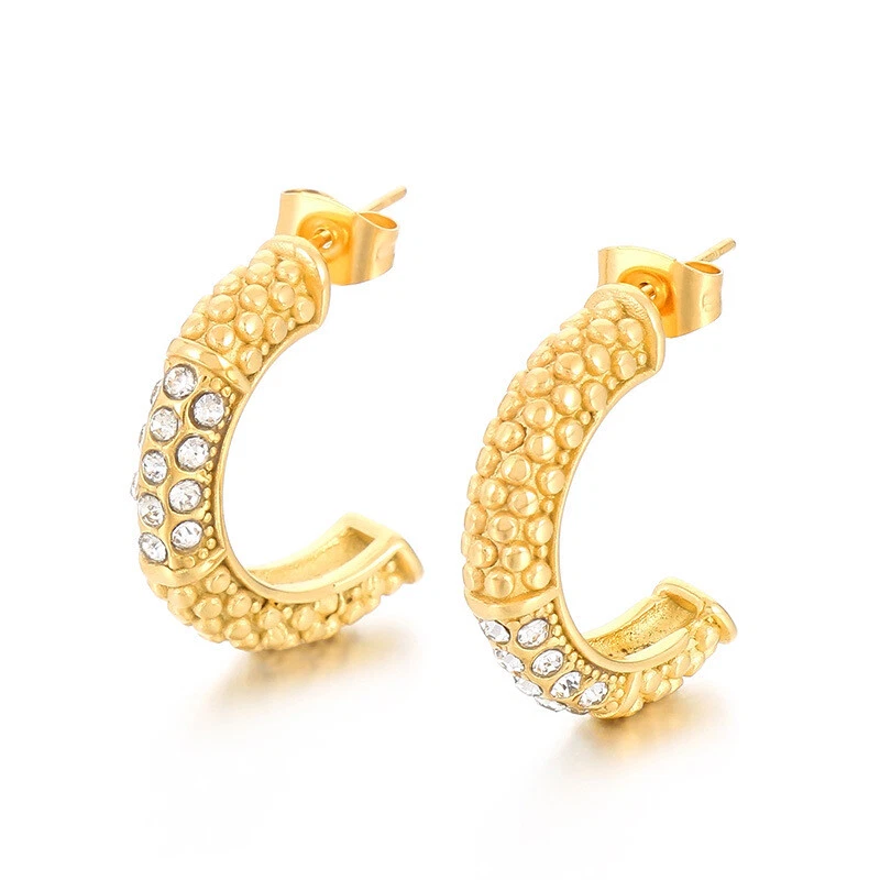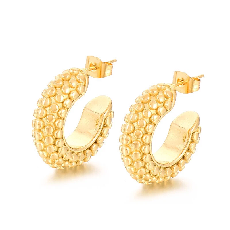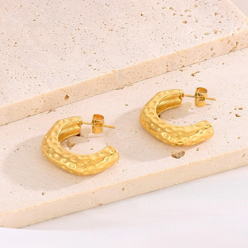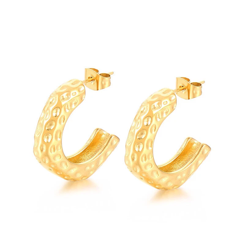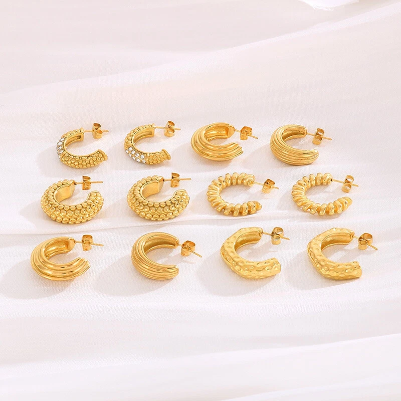 French titanium steel gold-plated earrings Vintage striped C-loop earrings