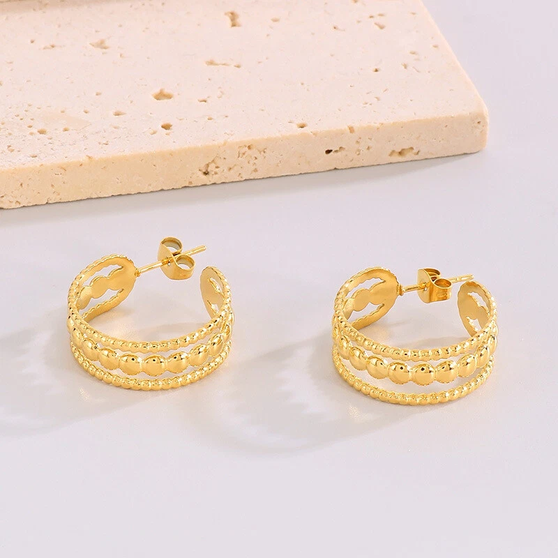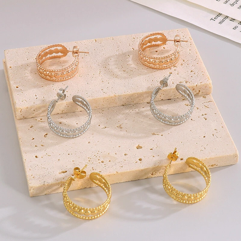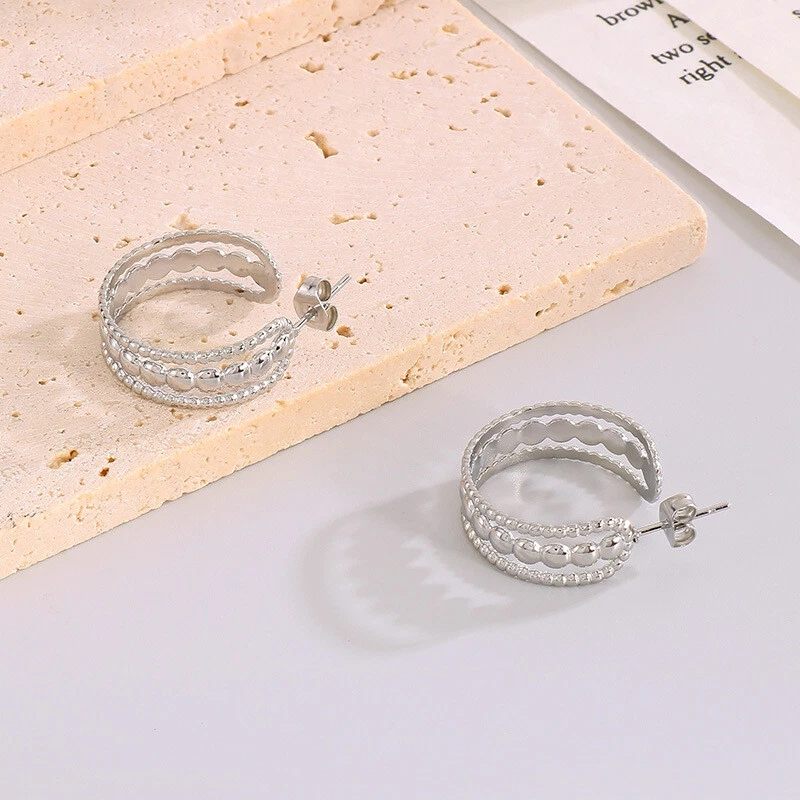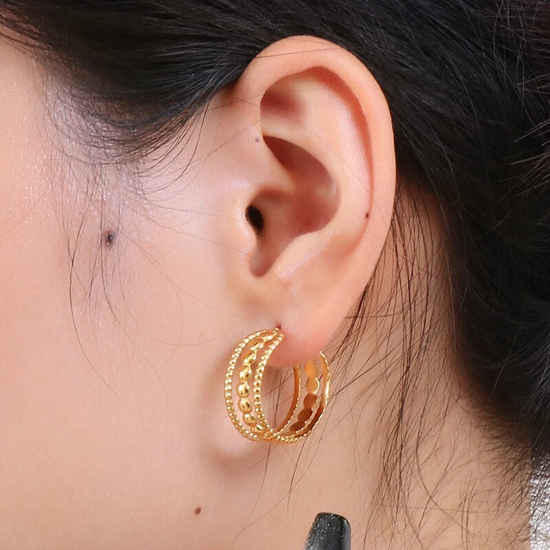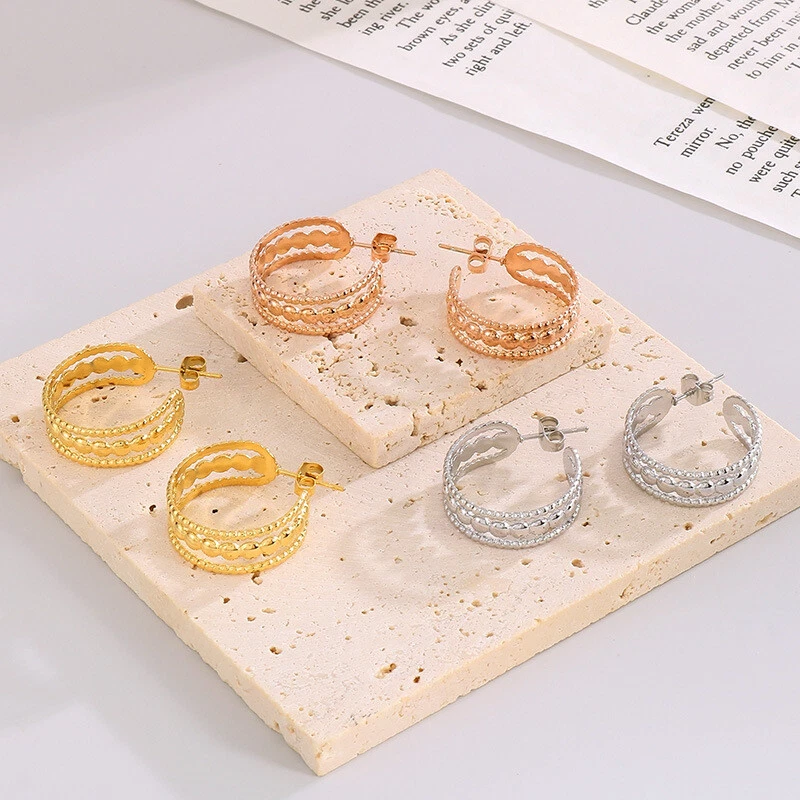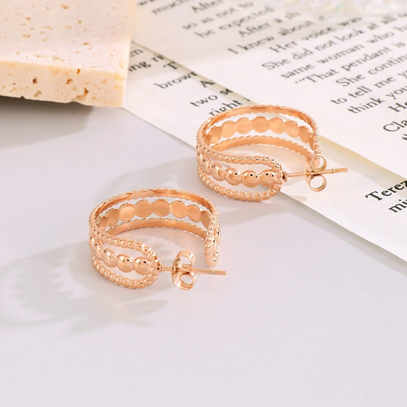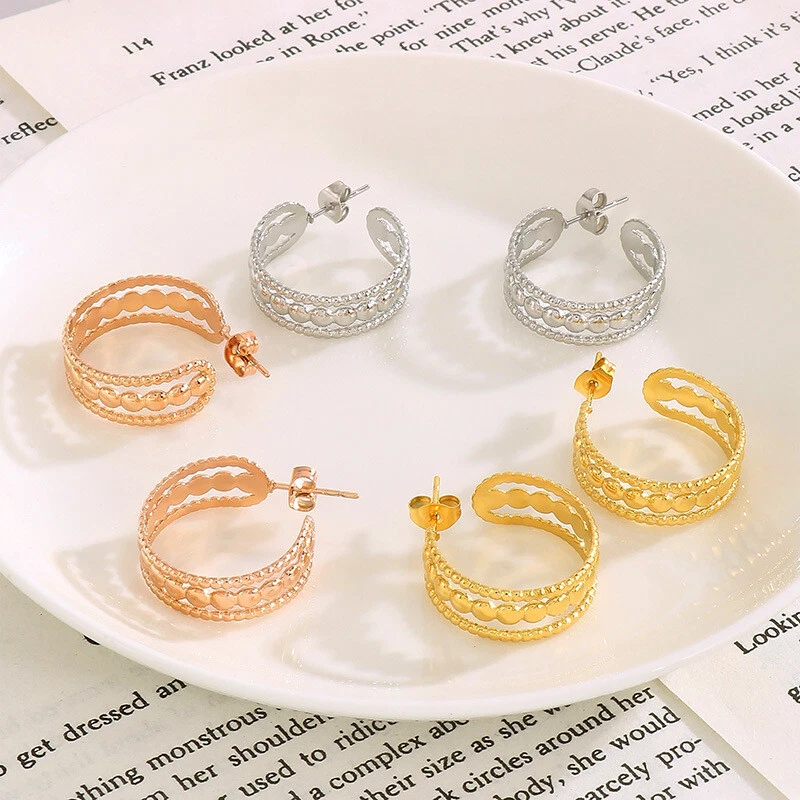 French vintage female titanium steel hollow earrings accessories ornaments