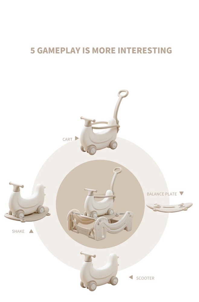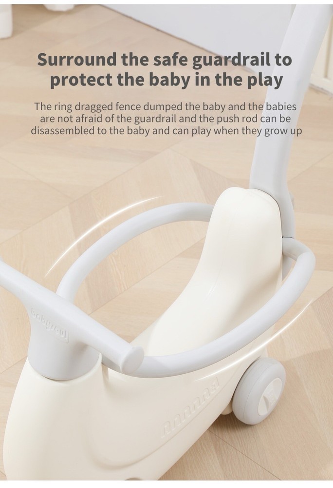 Product information Name: Banana Spring car Brand: babysoul Material: Environmental protection HDPE Size: 87*31*48 cm Color: Mocha-white / Gray-white Age: 1-6 years old
