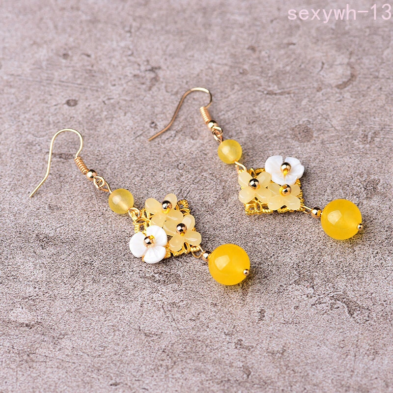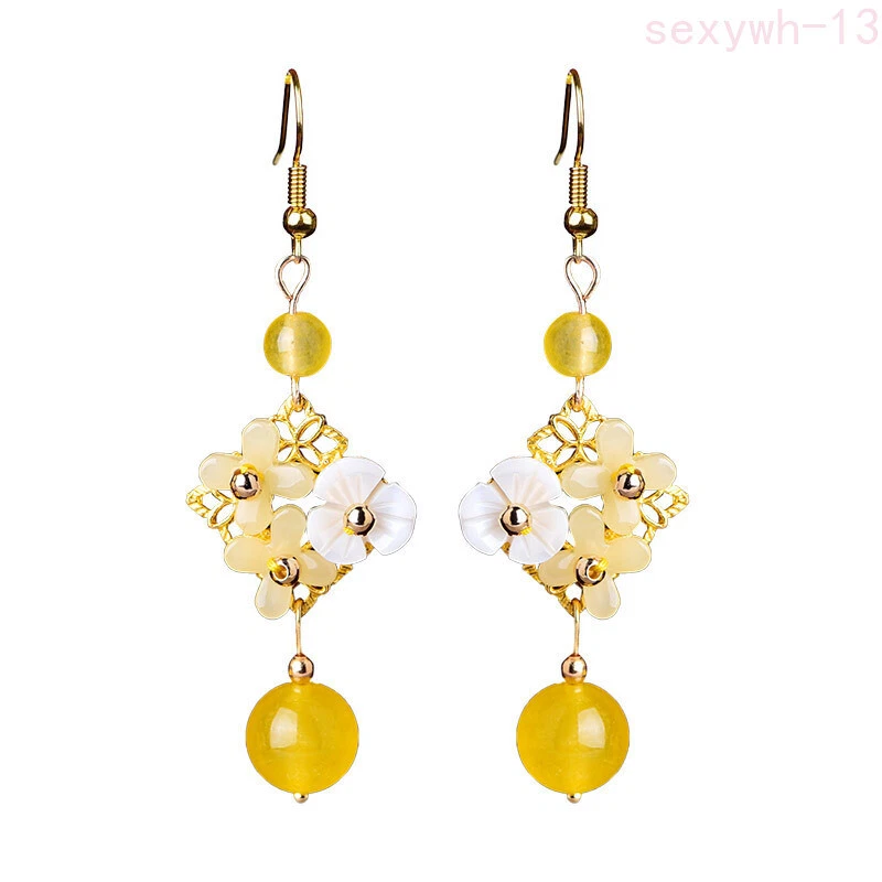 Fresh Exquisite Yellow Coloured Glaze Flower Pendant Earring Retro Fashion