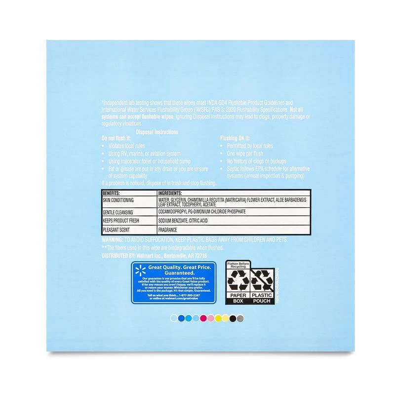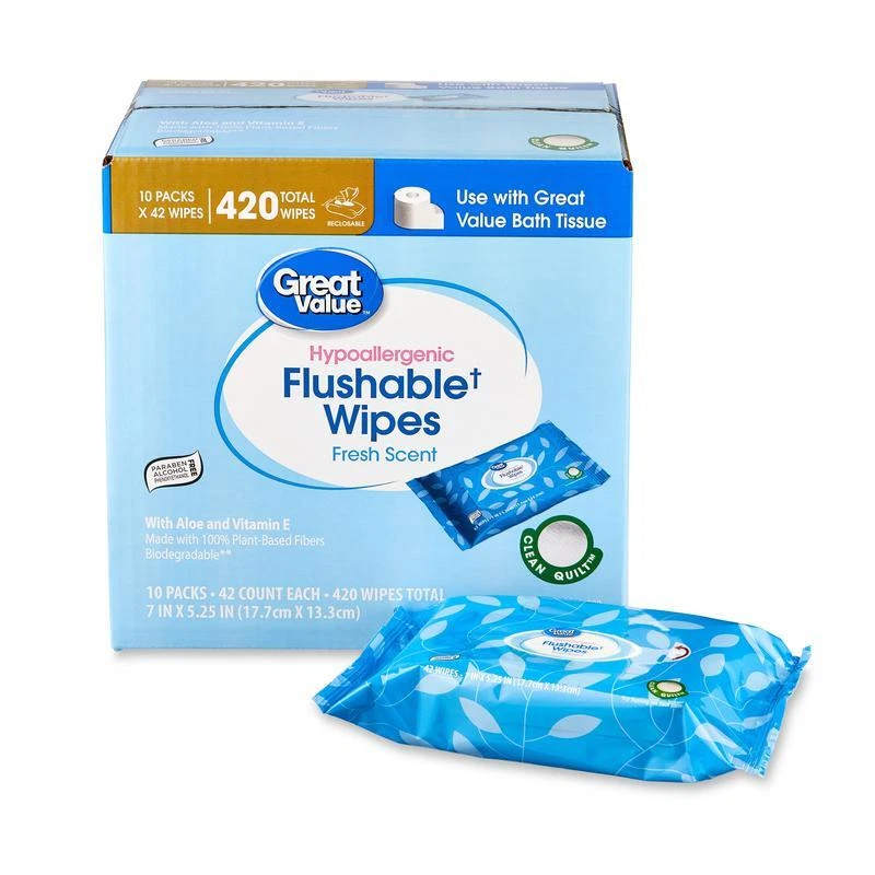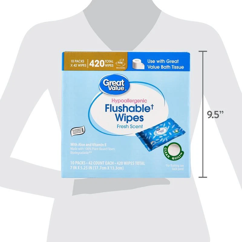 Acacia Wood Round Cake Stand Durable Elegant Serving Display Essential Kitchen 39.0 USD Free shipping Minimalist Black Ceramic Jug Vase Indoor Decorative Centerpiece 8 Inch New 8.43 USD Free shipping 33"H Artificial Dried Rice Stem Bundle Set of 3 Indoor Offices Home Bendable New 8.46 USD Free shipping Set of 3 Artificial Dried Rice Stems Fall Bundle Indoor Decor 33"H Natural New 8.46 USD Free shipping Clear Soda Can Dispenser BPA-Free Plastic Refrigerator Organizer Holds 9 Cans 9.27 USD Free shipping Clear Glass Paneled Vase Floral Arrangements Decorative Home Centerpiece New 9.61 USD Free shipping Clear Glass Floral Vase Tall Elegant Centerpiece Home Décor Gift Wedding New 9.83 USD Free shipping 6.5" Fall Leaf Glass Vase Decor Style Seasonal Warmth Vases Versatile Yellow New 10.01 USD Free shipping 19 Inch Artificial Silk Flower Bouquet Mixed Dahlia Rose Eucalyptus Indoor Decor 10.04 USD Free shipping Ribbed Ceramic Vase Indoor Use Elegant Home Decor Flower Plant Display Vases New 10.8 USD Free shipping Hydrating Wipes 120 Count Plant Based Aloe Vera Hypoallergenic Gentle Clean Skin 10.82 USD Free shipping Water-resistant Toiletry Bag Men Travel Dopp Kit Organizer Shaving Essentials 10.82 USD Free shipping 420 Count Fresh Scent Flushable Wipes are better than dry bath tissue alone. Feel confident and refreshingly clean with these soft, fresh-scented flushable wipes. These flushable wipes are hypoallergenic and free of alcohol, phenoxyethanol, and parabens. They're also infused with vitamin E and aloe extract. This box contains ten packages with 42 wipes each - totaling 420 wipes. The easy-to-use, resealable closure ensures the wipes stay moist and allows for easy access whenever you need them. Experience a new level of clean with these Fresh Scent Flushable Wipes. Contains 10 Easy Pop-Ups® Dispensing packs of 42 flushable wet wipes (420 total wipes) Fresh Scent Hypoallergenic Contains Aloe and Vitamin E Alcohol, phenoxyethanol and paraben free Made with 100% Plant-Based Fibers Great for On-the-Run, Travel, and other active lifestyles • Great for the Whole Family Better than dry bath tissue alone • Meets INDA GD4 Flushable Product Guidelines and International Water Services Flushability Group (IWSFG) PAS 3: 2020 Flushability Specifications. (See disposal instructions) Flushable Wipe Sheet measures 7. 0" x 5. 25" You may also like Patio Coffee Table Ottoman Cover Weather Resistant Heavy Duty Durable Secure Fit 28.04 USD Free shipping 22" Sport Travel Duffel Bag Multi-purpose Polyester Gym Carry Handbag Polyester 27.08 USD Free shipping Energy Efficient LED Light Bulbs Soft White 100W Equivalent 4 Pack Non Dimmable 17.0 USD Free shipping 19 Inch Artificial Silk Flower Bouquet Mixed Dahlia Rose Eucalyptus Indoor Decor 10.04 USD Free shipping Light Filtering Textured Curtain Panel Set 2pcs Rod Pocket Polyester Indoor Use 19.33 USD Free shipping Non-Stick Baking Pan Set 3-Piece Heavyweight Steel Cookie Sheet Roasting Pan New 22.6 USD Free shipping Silicone Mini Utensil Set Heat Resistant Cooking Tools Non-Stick Slotted Spatula 9.25 USD Free shipping Flushable Butt Wipes Hypoallergenic Plant Based Lavender 150 Count 3 Pack New 13.61 USD Free shipping Light Filtering Balloon Shade Valance W/ Bow Accent Rod Pocket Window Treatment 15.47 USD Free shipping Heavy Duty Floor Scrub Brush Steel Handle Multi Surface Grout Cleaner 10.5in New 18.55 USD Free shipping 16in Aluminum Air Crisp Pizza Pan Perforated Crisp Crust Even Heat Baking New 19.34 USD Free shipping Jacquard Blackout Curtain Panels 2 Pack Energy Saving Light Filtering Indoor Use 23.22 USD Free shipping