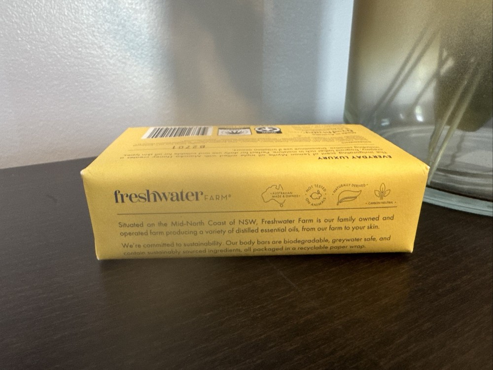 Freshwater Farm Australia Castile Bar Soap Lemon Myrtle Oil + Manuka Honey.