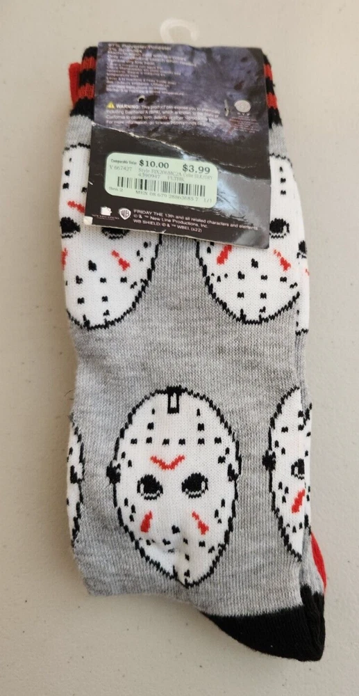 Friday the 13th NEW shoe size 6-12 2 pairs Jason Socks horror movies
